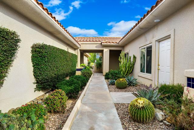 Beautiful 3BD/3BA home located in the heart of Rancho Mirage. This move-in-ready residence is thoughtfully designed for comfort and refined living, offering bright, airy, open spaces throughout. Upon entry, you're welcomed into an immaculately maintained interior highlighted by a desirable open floor plan, high ceilings, and custom flooring and window coverings that add warmth and sophistication. The gourmet kitchen overlooks the spacious dining area and great room, where a charming fireplace creates an inviting focal point--perfect for both everyday living and elegant entertaining. A wall of windows and expansive sliding glass doors showcase picturesque views of the pool, spa, and golf course, seamlessly blending indoor and outdoor living. Just beyond the main living spaces, the richly appointed primary suite offers a peaceful retreat, featuring a tastefully remodeled walk-in shower and a serene, spa-like atmosphere. Designed for effortless enjoyment, the private outdoor area includes an inviting pool and spa, lush landscaping, and breathtaking mountain and golf course views. This home truly represents the best of desert living.
