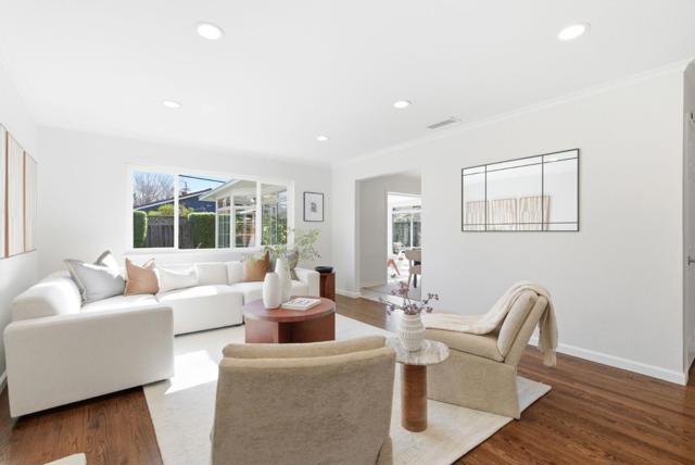 Tucked along a quiet, tree-lined street in a central Campbell location, this beautifully updated single-story home offers move-in-ready comfort with exciting future potential. Served by award-winning Capri Elementary, Rolling Hills Middle, and Westmont High, the home also features owned Tesla solar and approved permits for a 4th bedroom addition, delivering a rare blend of efficiency and flexibility. The remodeled kitchen is a standout with new cabinetry, quartz counters, tile backsplash, LVP flooring, and new appliances, creating a polished space for everyday living and entertaining. Gleaming hardwood floors run throughout, while remodeled bathrooms add a polished finish. A permitted sunroom expands the living space and features new flooring installed in 2026, offering a versatile area ideal for a home office, gym, playroom, or relaxed lounge with a natural connection to the backyard. Outside, enjoy a peaceful setting for lounging and gatherings, with an attached 2-car garage. Additional highlights include a roof replaced in 2013, 220V outlet for EV charging, designer light fixtures, recessed LED lighting, full interior and exterior paint, & refreshed landscaping. Minutes from Downtown Campbell (~1 mi), with easy access to Lawrence and San Tomas Expressways and Hwy 85/880/280.