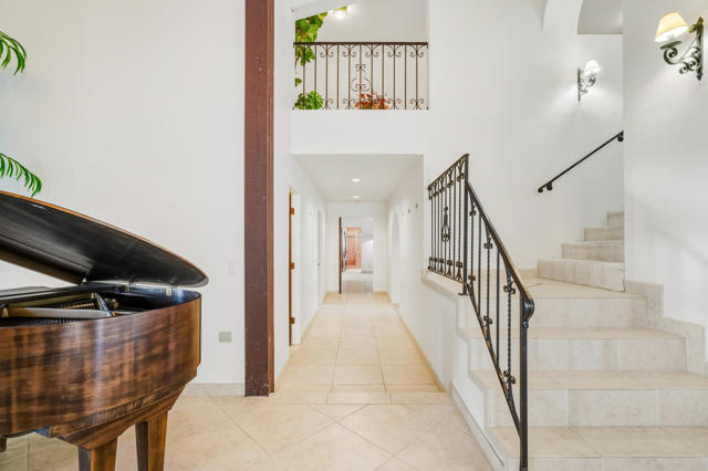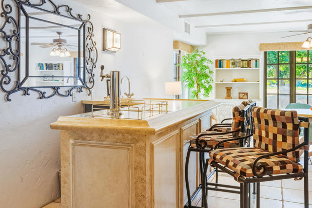 Behind the gates of Muirfield Estates at Mission Hills Country Club, where manicured fairways meet dramatic desert skies, this remarkable estate unfolds as a private sanctuary designed for gracious living and unforgettable moments. Set on an expansive 17,424-square-foot lot, the residence spans 5,834 square feet, offering four bedrooms and four-and-a-half baths in a setting that balances elegance, warmth, and quiet grandeur. The heart of the home opens effortlessly to the outdoors, where the southwest-facing backyard captures breathtaking mountain silhouettes and sweeping golf course views. Here, a private pool gazes toward the fairway, artfully positioned to preserve intimacy while embracing the beauty beyond. Days drift by poolside under the sun, and evenings glow with soft desert light as the mountains blush at sunset. Inside, soaring ceilings and carefully placed fireplaces create a sense of timeless luxury. The living room, with its dramatic vaulted ceiling and fireplace, feels both expansive and welcoming--ideal for intimate evenings or lively gatherings. The formal dining room, generously scaled for a ten-seat table, sets the stage for long dinners filled with conversation and candlelight. Morning coffee becomes a ritual in the breakfast room, where golf course views frame the start of each day. A richly appointed den with built-in bar and brick fireplace invites relaxed evenings, storytelling, and cocktails shared among friends. The spacious kitchen, designed to serve both everyday life and entertaining with ease, anchors the home with warmth and functionality. The primary suite is a retreat unto itself--an intimate escape featuring a fireplace, a private sitting area, and a luxurious bath that includes a separate spa room, offering a true sense of renewal and indulgence. Upstairs, a second level with two ensuite bedrooms provides privacy and comfort for guests or family, each space thoughtfully designed to feel serene and self-contained. Completing the estate is a four-car garage, generous proportions throughout, and an unmistakable sense of arrival. This is more than a residence--it is a place where mornings are unhurried, evenings are savored, and life unfolds against the timeless beauty of Mission Hills. A rare opportunity to experience privacy, space, and romance in one of the desert's most coveted enclaves.