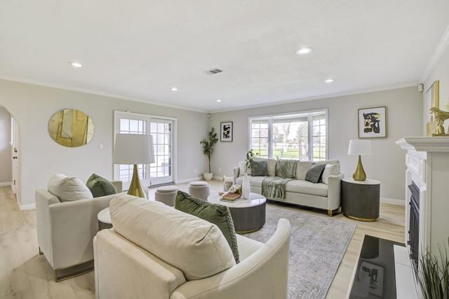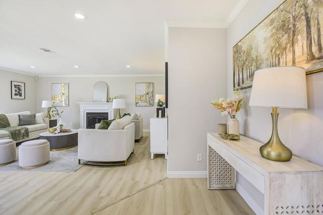 Recently updated one-story single-family home located in the desirable Strawberry Park neighborhood! The spacious living room is filled with abundant natural light and features large bay windows, creating a bright and welcoming atmosphere. This beautifully refreshed residence features an updated kitchen with new pendant lighting, modern fixtures, and a well-appointed dining area. The home also offers a separate family entertaining area with a cozy fireplace, perfect for gatherings and relaxation. The custom-designed tile bathrooms showcase new vanities, mirrors, and stylish finishes. Enjoy cozy evenings by the modern gas fireplaces in both the spacious front living room and the family entertaining area. The hallway showcases beautiful arches with decorative wall paneling, adding character and charm. Additional upgrades include new bedroom ceiling fans, double-pane windows, and contemporary lighting. The tranquil, generously sized backyard offers the perfect space for relaxation and entertaining. Conveniently located with easy access to Hwy 280 and 880, just minutes from the new Apple headquarters, and close to highly rated schools. A true gem in a prime Silicon Valley location.