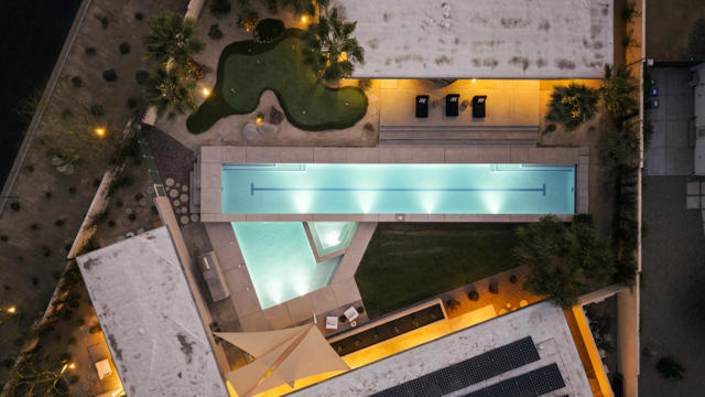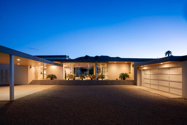 Designed by Lance O'Donnell, AIA, of O2 Architecture, this architecturally significant residence is a refined modern desert compound set against the mountains of Rancho Mirage. Featured across multiple architectural and design publications, the home carries a quiet pedigree expressed through thoughtful scale, light, and proportion.Spanning approximately 5,119 square feet on a generous 0.7-acre lot, the estate is composed of three separate structures, creating a private, compound-like setting ideal for hosting, multigenerational living, or guests who value independence and privacy. The flexible layout offers seven bedrooms and seven bathrooms, allowing the home to adapt effortlessly to both everyday living and large-scale entertaining.Architectural details define the experience throughout. A striking floating ceiling introduces a sense of volume and lightness, while walls of glass and intentional orientation invite abundant natural light, blurring the line between indoors and out. The result is an atmosphere that feels open, calm, and deeply connected to its desert surroundings.Resort-level amenities elevate the lifestyle, including a 25-meter lap pool designed for both fitness and leisure, additional pools framed by new decking, and outdoor living spaces enhanced by misters for warm desert days. Indoors, a state-of-the-art private theater room offers a cinematic retreat, complemented by a whole-home sound system and a comprehensive home security system for comfort and peace of mind. A dedicated sauna completes the experience, adding a restorative layer to this desert sanctuary.Set within a highly desirable enclave of Rancho Mirage, the property enjoys proximity to world-class dining, golf, and entertainment, while maintaining the tranquility of a mountainside desert oasis, offering a rare balance of seclusion, views, and architectural presence.