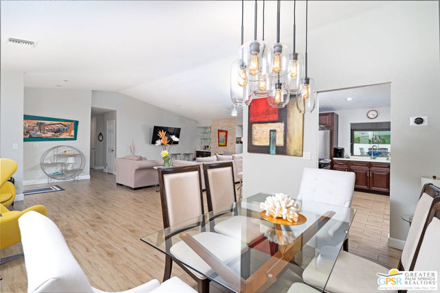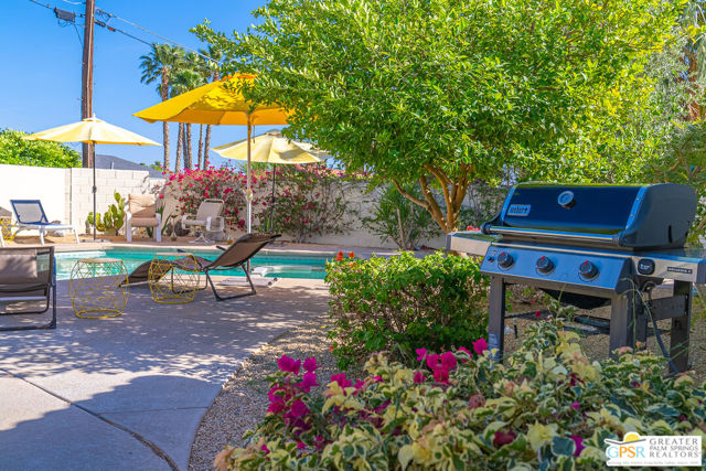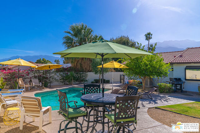 LONG-TERM LEASE ONLY. Furnished + Solar. Pets OK. The open floor-plan and tall vaulted ceilings create perfect gathering spaces for every lifestyle. Enjoy movies on the sofa next to the fireplace or having cocktails with friends served from the wet bar. When friends gather, someone always ends up in the kitchen. Stainless steel appliances, gas cooktop and spacious counters allow the cooking to continue while the open-concept island and window facing the pool keep the cooks connected & beverages flowing.Three bedrooms grace the home with the primary suite featuring a large bath including double sinks, walk in shower for two as well as double closets. The back yard is the best room out of the house! In-ground heated pool and spa, gazebo, exterior pool table, numerous fruit trees, manicured landscaping, fire pit, outdoor grill and privacy walls allow for relaxing or entertaining. The laundry room is spacious enough to accommodate side-by-side washer/dryer, wall cabinetry and a large closet. Home includes 2-car garage, 2-car driveway, connected outdoor grill, pool wifi automation, new pool heater (2021) and owned 25-panel solar system.