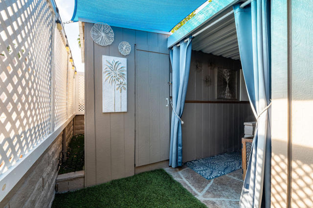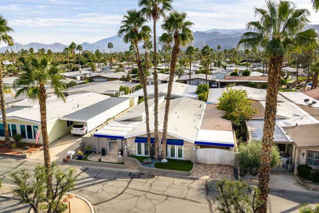 This is a beautiful must-see home to appreciate. This expansive home features two oversized bedrooms and two bathrooms, located in the highly sought-after community, The Colony in Rancho Mirage. This home is truly an entertainer's dream home or your very own private getaway. The curb appeal of this home is stunning, with all-new beautiful custom window awnings, artificial turf, and an incredible landscape. The expansive, fully enclosed patio with wrap-around yard that has been updated with high-end artificial turf and custom overlay concrete work on the patio and walkways gives this home privacy that is indescribable. The oversized primary bedroom has a floor-to-ceiling and wall-to-wall mirrored wardrobe, with high ceilings and an additional space for a reading/TV area. With an ensuite bathroom with a double sink, a soaking jet tub, and walk in glass shower. It's easily its own wing of this expansive home. Naturally bright-extended secondary bedroom has room for an office desk or sitting area. Originally a three-bedroom home, it can easily be converted back. This home has had some major upgrades in 2024. Estimated $25K in HVAC upgrades, mini split A/C unit added to the guest bedroom, Newer HVAC system, and new Nest thermostat, Interior paint, carpet in the primary and laminate flooring in the guest bedroom and kitchen, both bedrooms' ceilings have been retextured, and fresh paint. New ceiling fans in every room with additional recessed lighting added throughout the home, a newer washer and dryer, the house leveled with additional leveling jacks installed, and double-pane windows throughout. The enclosed carport has a custom overlay with a sitting area with an outdoor TV. An electric carport gate for added privacy and security. An oversized workroom with an additional storage shed adds plenty of storage space. The Colony is known for its first-class amenities, pool, spa, gym, nail & hair salon, activities, and social events. Call for a private showing, let's celebrate your new home. Mindy Champagne 760.485.5576