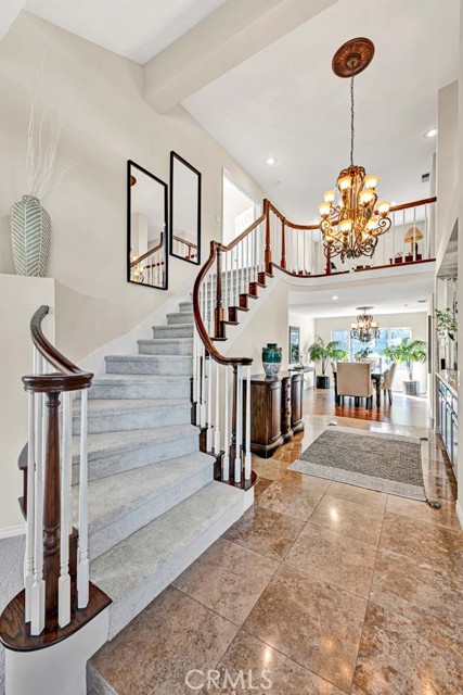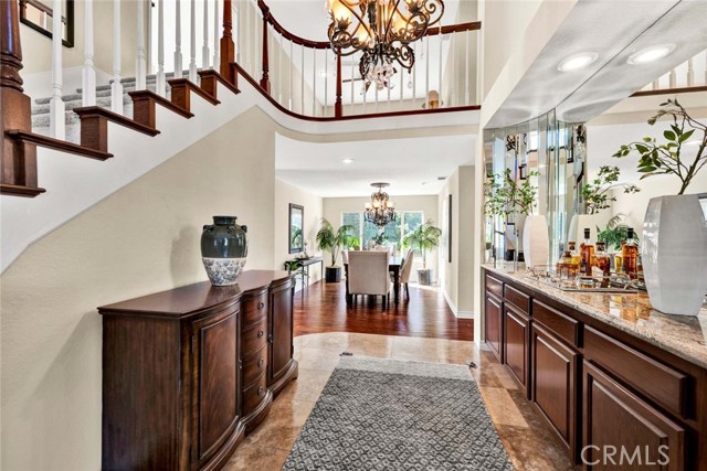 Are you looking for a turn key home with a fabulous view? This is the house for you. As you arrive you will be impressed by the great curb appeal. As you walk up to the double door entry you will notice the professional landscaped entry. Through the front door you will find a very inviting Interior which will feature vaulted ceilings and a very spacious Living Room for your entertaining. Adjacent to the living room you will welcomed to the formal dining room which will be perfect for your dinner guests. From the formal dining room you will enter into the open family room and remodeled kitchen. The spacious family room has a gas fireplace and will be a great area for you and your guests to congregate to watch those sporting events or just to relax around the fireplace. The kitchen is truly for the gourmet cook. The kitchen features a beautiful island, granite counter tops, beautiful wood cabinets, and stainless steel appliances. There is a downstairs bedroom. Downstairs also features a 3/4 bath. Upstairs you will find 3 bedrooms and a wonderful office area. The primary bedroom is very spacious and welcoming. The primary bathroom has been remodeled and features include Granite counter tops, tile flooring, bath tub and separate shower. Also incudes a walk in closet. The bonus room located in the front of the house is large enough to be a game room, bedroom, office or reading room with a library. The back yard area will be great for entertaining. It has great grass area & a built in BBQ. The valley views from the backyard are captivating. This home is located in High Horse Trails. There are stables which are available to residents on an availability basis, there is availability now for residents with horses. The home is close to shopping, freeways, parks & 241 toll road. This is a great area for those that like outside living.