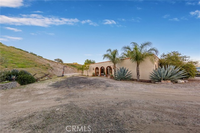Welcome to this beautifully updated single-story home offering 2,388 sq ft of living space on a fully fenced and gated 2.67-acre lot. The main residence features 4 bedrooms, 1 full bath, 1 three-quarter bath, and 1 half bath, with a renovated kitchen, bathrooms, and laundry area. A two-stall carport and charming center courtyard with trellis and mature landscaping enhance the home’s inviting appeal. As you enter the property, you’re greeted by a tranquil pond and a large newer planter showcasing olive trees and roses. The grounds are rich with established fruit trees and rose bushes throughout. Ideal for animal lovers, the property includes a large pasture with two enclosed corrals, an additional enclosable area with covered structure for large animals, a chicken coop with hen boxes, and an extra-large dog kennel. Five exterior storage sheds are also included. Perfect for contractors or business owners, the property features a newer (approximately 3-year-old) 2,400 sq ft shop with a 14’ x 14’ sliding door, 19-foot interior ceiling height, and both 110V and 220V electrical. There is ample space for parking commercial vehicles. In addition, a newer (just over one year old) 800 sq ft shop/storage building offers electrical and is plumbed for a future half bath—an excellent complement to the main shop. Adding even more value is a newer (just over one year old) 800 sq ft, 2-bedroom, 1-bath ADU featuring owner-built custom cabinetry and high-quality finishes throughout. The ADU and shop present outstanding income or flexibility opportunities—ideal for extended family, a personal business, or leasing to another business owner. This rare, versatile property offers privacy, functionality, and endless possibilities—all in one exceptional setting.