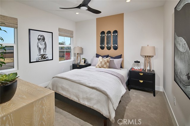 NO MELLO ROOS, LOW HOA, Single Family Residence under construction by Risewell Homes (just 29 homes total, limited opportunities remaining). LARGEST LOT at end of cul-de-sac (see map photo), floorplan lives like a single level with Primary Suite at main floor, complemented by additional Bed + ensuite Bath, w/ a Flex room and covered Outdoor Room. Open Great Room/Kitchen/Dining frame the centerpiece of floorplan, with a large Bonus room upstairs opposite two additional Bedrooms, each with ensuite Baths. Included purchased solar power system, washer/dryer/fridge, and deep front/backyards await your landscaping design. Designer-curated finishes consist of GE Café Series SS appliances, Quartz countertops, kitchen island pendant lighting, LVP and tile flooring. Desirable schools, Los Angeles and Orange County commuter routes nearby. ESTIMATED APRIL MOVE IN, seller concessions available.