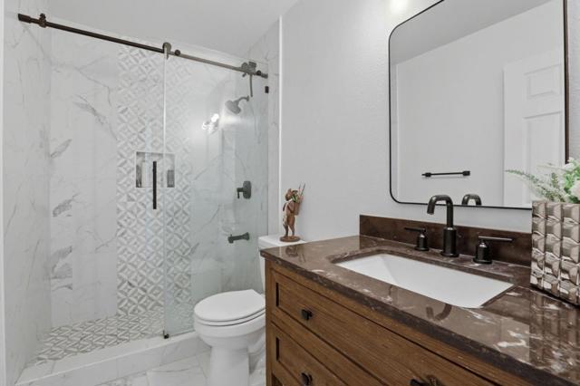 Tucked away on a quiet court at the base of the Santa Teresa Hills, this 4-bedroom, 2.5-bathroom home offers 2,386 sq ft of well-designed living space on a generous 6,900 sq ft lot. A two-story foyer sets the tone, leading into a living room anchored by a fireplace with mantel & flowing seamlessly into the dining area. The kitchen features granite countertops, a double oven, & opens to a second dining area while overlooking the spacious family room. A second fireplace & sliding doors connect to the backyard, complete with a pergola, views of the Santa Teresa Hills, & various fruit trees. The primary suite feels like a true retreat with glass French doors, ample space, crown molding, & two closets, including one with mirrored doors. The en suite bath offers dual sinks with new countertops & a walk-in shower. Two additional bedrooms include walk-in closets, while the fourth bedroom features a generously sized closet. New laminate flooring throughout & new carpet on the stairs are complemented by recessed lighting, dual-pane windows, & a water softener & filtration system. A three-car garage provides excellent storage & flexibility. Located near Highways 85 & Santa Teresa Boulevard, just minutes from grocery stores, shopping, & restaurants, & assigned to Santa Teresa High School.