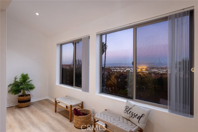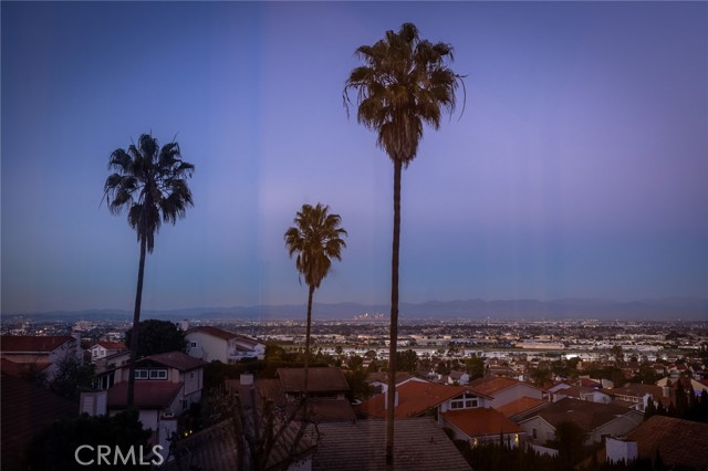 Perched at the highest point of the desirable Country Hills community, this semi-private retreat offers peace, privacy, and breathtaking panoramic views. Enjoy sweeping vistas of Downtown Los Angeles, the Hollywood Hills, and the Santa Monica Mountains from the backyard and two enclosed balconies—truly a home above it all. Situated on one of the largest lots in Country Hills (12,141 sq ft), this expansive 4-bedroom, 4-bath residence offers exceptional indoor-outdoor living. A ground-floor bedroom and full bath provide flexibility as a guest suite or home office. The second level is the heart of the home, where walls of windows frame dazzling city and mountain views from the living, dining, and sitting areas. An enclosed balcony off the living room, surrounded by mature trees, creates a serene space for dining, entertaining, or quiet moments. Two additional bedrooms share a spacious Jack-and-Jill bathroom, complemented by a separate guest powder room. The entire third floor is dedicated to a private primary suite. Even more elevated views can be enjoyed from the bedroom and its own enclosed balcony. Two large walk-in closets and a spa-like bathroom with separate tub and shower complete this retreat. Thoughtful updates include new windows, flooring, recessed lighting, updated light fixtures, and fresh interior paint. The home also features a large two-car garage with washer/dryer hookups and two to three additional driveway parking spaces. Ideally located in the sought-after Country Hills community with excellent schools, convenient access to shopping and dining, and just 10 minutes to the beach—this is elevated living at its finest. When viewing the property, guests may park in the driveway in front of the home on the right (2918).