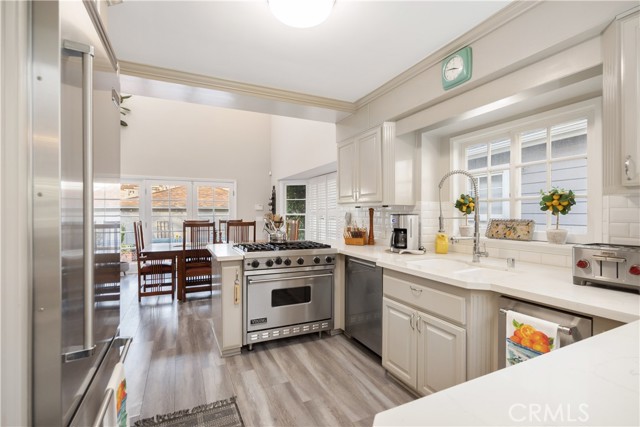 Welcome to 30 La Linda Drive, a rare opportunity to own a 4 bedroom home in the exclusive gated community of La Linda Drive in Bixby Knolls, Long Beach, CA. Known for its privacy, tree-lined streets, and custom homes, this neighborhood is one of the most desirable residential enclaves in Long Beach. This spacious two-story home features an open and versatile floor plan designed for both everyday living and entertaining. The chef’s kitchen includes premium Viking appliances, generous counter space, and bar seating that flows seamlessly into the formal dining room with dramatic vaulted ceilings and French doors leading to the backyard. Multiple living spaces provide flexibility, including a formal living room and a secondary family room perfect for entertaining or relaxing. A highly desirable first-floor bedroom and renovated bathroom create an ideal setup for guests, extended family, or a home office. Upstairs, the primary suite offers a private balcony overlooking the peaceful gated community, along with a spacious spa-style bathroom featuring a freestanding soaking tub, separate shower, and abundant natural light. Two additional bedrooms, an updated full bathroom, and an upstairs laundry room add convenience and functionality.The backyard is designed for Southern California indoor-outdoor living with mature landscaping, a koi pond, multiple entertaining areas, a produce garden, and a private putting green. Additional highlights include a two-car garage, guest parking, and access to the private La Linda neighborhood park. Located in the heart of Bixby Knolls, this move-in ready home is just minutes from top-rated dining, shopping, parks, and major commuter routes, offering the perfect blend of luxury, privacy, and convenience in Long Beach real estate.