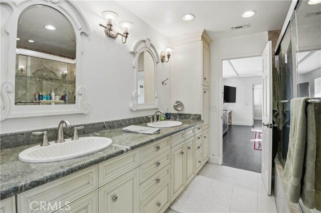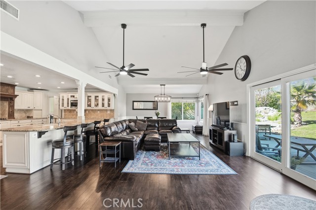ENTERTAINERS DREAM HOME with a VIEW of both the city lights and mountains!!! This gorgeous home in the highly desirable area of Rancho Cucamonga - Offers a perfect blend of inviting living areas, tasteful elegance and an abundance of natural light giving a radiant warmth all throughout the day. This double level layout welcomes you into an attractive entrance which flows beautifully into the family / dining area which then opens into the gourmet kitchen / family room area. The gorgeous kitchen features stainless steel appliances, granite counter-tops and stunning custom cabinets. There are three generously sized bedrooms on the main level. The secluded primary en-suite serves as a private retreat, with unforgettable views. The back terrace is designed for enjoyment of every season accented with an extensive patio that leads up to the pool, BBQ and fire pit area. The shimmering pool has a slide which is fun for all ages and the jacuzzi to enjoy any time of the year! Whether hosting large gatherings or enjoying intimate moments by the fire, this home delivers a sense of place and presence that will bring ever lasting memories for a lifetime! Bonus Features: Dual air-conditioning & heating units (3 zones), 2 Dishwashers in the Kitchen, New Pool Equipment, New Garage Doors, Luxury Vinyl Flooring and much more!