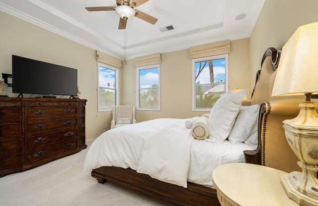 Welcome to Esplanade, a prestigious gated community in the heart of La Quinta, where refined design meets the relaxed sophistication of desert living. This impeccably maintained residence offers an effortless blend of comfort, elegance, and resort-style living in one of the Coachella Valley's most desirable locations.A light-filled open floor plan with soaring ceilings and expansive windows creates a sense of space and serenity throughout. With over $200,000 in pre and post closing upgrades, there's a lot to appreciate in the finer details. The chef's kitchen anchors the home with sleek quartz countertops, premium finishes, and a substantial island designed for both intimate mornings and elevated entertaining.The living spaces transition seamlessly outdoors to a private backyard retreat featuring a shimmering pool and spa, framed by breathtaking mountain views. Whether hosting under the stars around the fire pit or enjoying quiet afternoons in the sun, this outdoor oasis delivers true desert luxury.The home features three generously sized bedrooms and three refined baths, including a tranquil primary suite with an oversized walk-in closet and direct access to the patio through elegant French doors. A dedicated office or flexible living space adds versatility for modern lifestyles, while the three-car garage and curated upgrades throughout enhance both form and function.Esplanade offers a prime location just moments from world-class golf, tennis and pickleball, upscale shopping and dining, the Acrisure Arena, and the charm of Old Town La Quinta.Ideal as a full-time residence, seasonal escape, or investment opportunity, this exceptional home embodies elevated desert living at its finest. Private showings available--experience it for yourself.