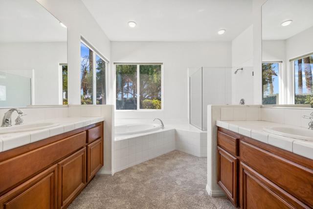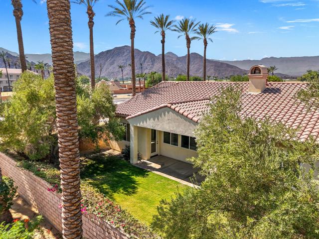 Discover your desert paradise behind the gates of desirable La Quinta Del Oro, in sought after North La Quinta. This stunning home boasts 5 BD and 4 BA, including a detached casita for a private guest escape & approx. 3045 SF of light filled living space. Step inside to an open and inviting great room with soaring ceilings and a cozy fireplace, creating the ideal space to relax or entertain. The expansive kitchen features granite-tiled countertops, a center island, pantry, and counter seating, seamlessly flowing into the dining area for effortless gatherings. A versatile bonus room just off the kitchen works beautifully as a family room, formal dining room or office. Unwind in the spacious primary suite with door to the patio and primary bathroom with dual vanities, soaking tub, shower & walk-in closet. Three additional guest rooms and two guest bathrooms in the home and charming detached casita with its own bathroom provide comfort and privacy for everyone. The backyard is your own private oasis showcasing spectacular mountain views surrounded by mature landscaping, and an expansive lawn offering plenty of room to create your dream custom pool and outdoor living space. Additional highlights include a laundry room, 2-car garage, ceiling fans throughout, low HOA, and IID electric for lower utility costs. Centrally located, adjacent to the Indian Wells Tennis Garden, home of the BNP Paribas Open, and just minutes from premier dining, shopping, entertainment, world-class golf, festivals, and top-rated International Baccalaureate schools. Desert living at its finest, this is one you won't want to miss.