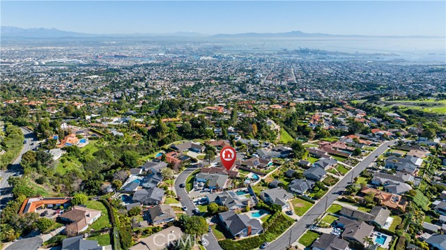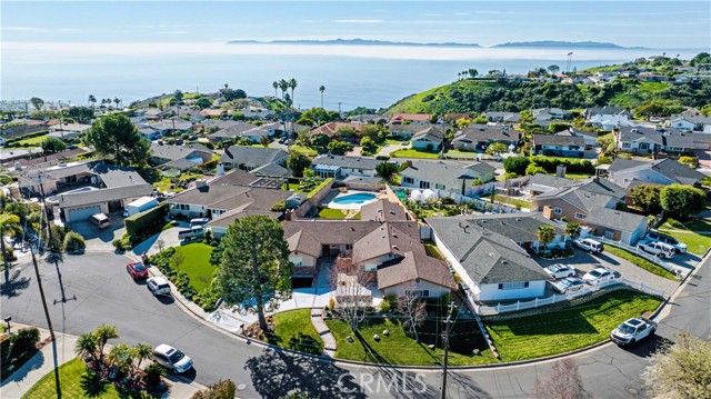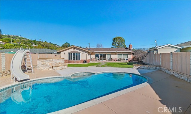 Tucked away at the end of a quiet cul-de-sac in Rancho Palos Verdes, this expanded and remodeled home offers a rare blend of privacy, flexibility, and indoor-outdoor living. With approximately 2,694 square feet, 4 bedrooms, and 3 bathrooms, the layout is ideal for both everyday comfort and effortless entertaining. The spacious living room is anchored by a classic brick fireplace and flows easily into the adjacent formal dining area, making gatherings feel both comfortable and connected. A separate famiy/office room off the Livng room creates additional space. The kitchen offers generous cabinetry and workspace, perfectly positioned to serve both indoor and outdoor entertainment areas. One of the home’s most special features is its flexible bedroom configuration. A unique primary suite provides separation and privacy, while an additional guest suite with its own attached bath is ideal for visitors, extended family, or a private home office setup. This thoughtful layout allows for multigenerational living or work-from-home versatility without sacrificing personal space. Step outside and you’ll find a backyard designed to enjoy Southern California’s year-round climate. A spacious patio, sparkling pool and spa with Catalina view create an inviting resort-style atmosphere, perfect for relaxing afternoons or evening gatherings under the coastal sky. Low-maintenance turf and mature landscaping enhance both privacy and ease of care. Conveniently located near shopping, theaters, golf courses, parks, and highly regarded Palos Verdes schools, this home offers both a peaceful residential setting and easy access to freeways. A wonderful opportunity to enjoy space, comfort, and the Palos Verdes lifestyle in one inviting property.