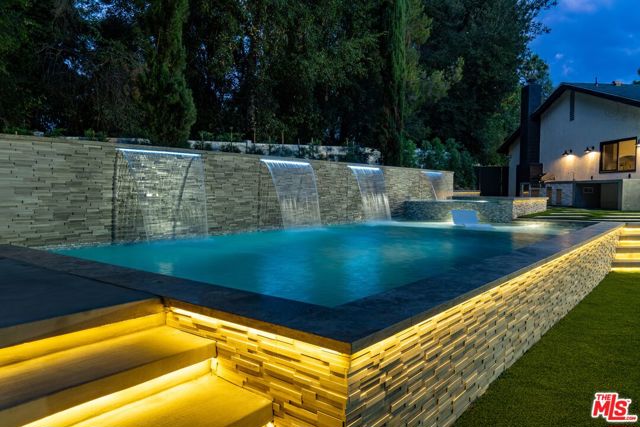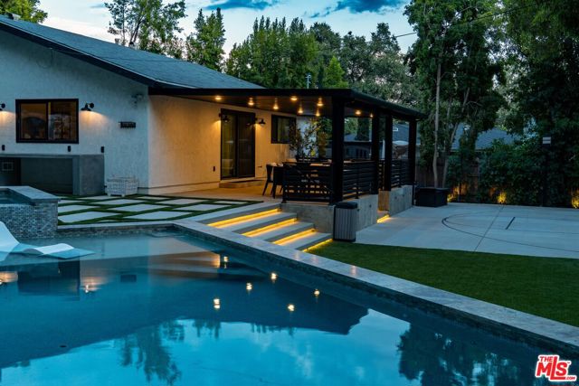 Nestled on a friendly street in the highly sought-after La Canada neighborhood and Paradise Canyon Elementary community, this inviting single-story traditional home offers an effortless blend of comfort and style. Featuring three bedrooms, a bonus office/room, and a sparkling pool and spa, the home is designed for both everyday living and entertaining. A welcoming entry leads into the living room and flows seamlessly into the kitchen and dining room. The beautiful backyard creates an ideal indoor-outdoor living experience. The spacious kitchen boasts a large island with Taj Mahal quartzite, custom cabinetry, stone countertops, and stainless steel Wolf and Sub Zero appliances, providing ample space for cooking and entertaining. Tucked away from the main living areas are three large bedrooms, including a well-appointed primary suite with a custom closet and a full bathroom. The backyard offers multiple entertainment options such as a covered patio, basketball/pickleball court, a luxurious pool and spa with waterfalls, custom hardscape, a grassy play area, and built in BBQ for year-round enjoyment. Ideally located with easy access to local shops, restaurants, this home is connected to sewers and served by award-winning La Canada schools - an exceptional opportunity in a prime neighborhood. The City of La Canada Flintridge has identified this neighborhood as part of a proposed sound wall improvement project. The City is currently in the budgeting and planning stages, and construction timelines have not yet been determined. Buyers are advised to verify details directly with the City regarding scope, design, and future scheduling.
