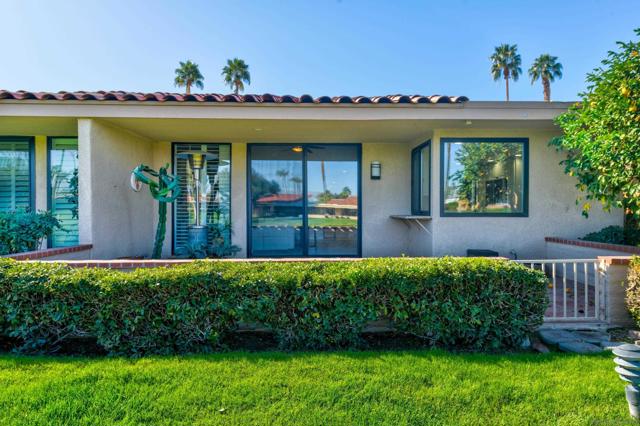 Discover this exceptional Sunrise Country Club residence nestled within one of Rancho Mirage’s premier gated communities. This spacious home overlooking the lush 14th fairway offers serene golf-course and mountain vistas. Step inside to an inviting open layout showcasing approximately 1,650 sq ft. This expanded desirable Barcelona model features 2 bedrooms, 2 baths, plus a versatile den/office/3rd bedroom. The bright living room boasts vaulted ceilings and sliding glass doors that seamlessly connect indoor living to the private patio — ideal for morning coffee or sunset relaxation against a backdrop of greenery. Additional features include dual-pane windows, plantation shutters, newer AC, garage door, and laminate flooring. The kitchen with granite counters and newer appliances, offers abundant cabinetry and counter space with a natural flow into the adjacent dining area. The comfortable primary suite includes an ensuite bathroom and walk-in shower, while the additional bedroom (or den) and guest bath provide comfort and privacy for visitors. Convenience meets functionality with an indoor laundry room that opens directly to the attached 2-car garage. Sunrise Country Club offers an exceptional resort-style lifestyle with 24-hour security, golf, 21 swimming pools, 19 spas, tennis and bocce courts, fitness center, clubhouse amenities, and more, all within a beautifully landscaped enclave just minutes from world-class dining, shopping, and desert recreation. Discover this exceptional Sunrise Country Club residence nestled within one of Rancho Mirage’s premier gated communities. This spacious home overlooking the lush 14th fairway offers serene golf-course and mountain vistas. Step inside to an inviting open layout showcasing approximately 1,650 sq ft. This expanded desirable Barcelona model features 2 bedrooms, 2 baths, plus a versatile den/office/3rd bedroom. The bright living room boasts vaulted ceilings and sliding glass doors that seamlessly connect indoor living to the private patio — ideal for morning coffee or sunset relaxation against a backdrop of greenery. Additional features include dual-pane windows, plantation shutters, newer AC, garage door, and laminate flooring. The kitchen with granite counters and newer appliances, offers abundant cabinetry and counter space with a natural flow into the adjacent dining area. The comfortable primary suite includes an ensuite bathroom and walk-in shower, while the additional bedroom (or den) and guest bath provide comfort and privacy for visitors. Convenience meets functionality with an indoor laundry room that opens directly to the attached 2-car garage. Sunrise Country Club offers an exceptional resort-style lifestyle with 24-hour security, golf, 21 swimming pools, 19 spas, tennis and bocce courts, fitness center, clubhouse amenities, and more, all within a beautifully landscaped enclave just minutes from world-class dining, shopping, and desert recreation.