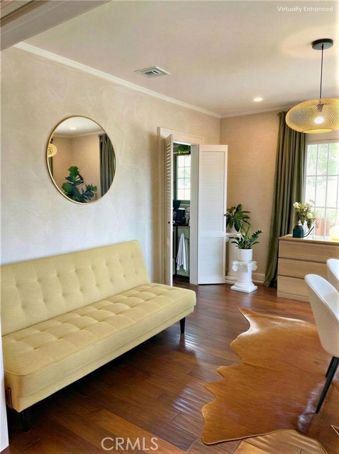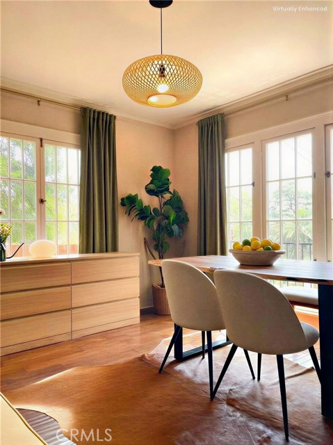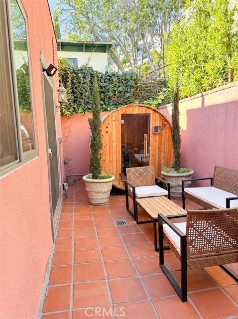 Tucked at the end of a quiet cul-de-sac in the storybook hills of Hollywood Heights, this exquisitely updated 1923 duplex offers a rare blend of historic charm, modern luxury, and total privacy—just moments from the Hollywood Bowl, scenic trails, and city energy. The main residence has been thoughtfully transformed with Portola non-toxic lime wash paint, creating soft texture and a warm, calming glow throughout. Enter from the upper stairway into a spacious living room with original wooden beams and a vintage fireplace. The space flows into the dining area, separated by an original sliding door when desired. Large windows fill the home with exceptional natural light for long, uplifting daylight hours. New recessed lighting and Philips Hue smart lights allow fully customizable ambiance. The kitchen features new appliances, refreshed cabinetry, and a luxury faucet. The bathroom has been fully remodeled with designer finishes. A dedicated laundry room includes a new washer and dryer and tankless water heater. Major upgrades provide true turnkey peace of mind: new roof, fully rewired electrical, re-piped plumbing, new heater unit, smart thermostat, and central air system. Outdoors, a newly created tiered garden with sprinkler system offers multiple private spaces for morning coffee or evening relaxation under mature trees. A brand-new 4-person traditional sauna with dedicated circuit and phone-controlled system adds a rare wellness retreat element. An attached garage provides parking or additional storage. The lower unit space is in excellent condition, offering flexibility for owner-users or investors. Upon request both units can be delivered vacant. Located in one of Hollywood’s most enchanting hillside neighborhoods, known for winding streets, architectural gems, and canyon tranquility, this soulful and beautifully modernized retreat feels worlds away—yet remains effortlessly connected to all Los Angeles has to offer. A rare opportunity to own a private, character-rich, turnkey duplex in Hollywood Heights.