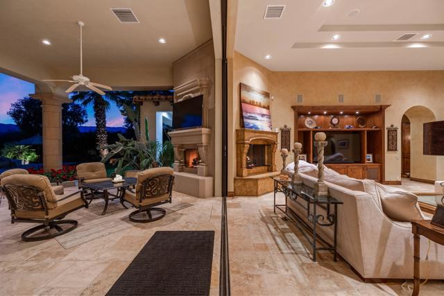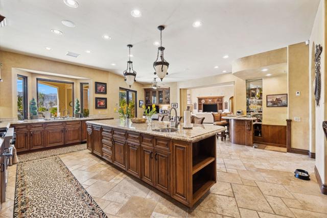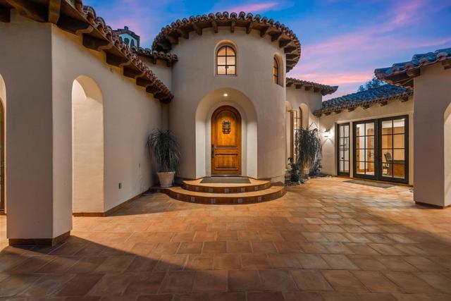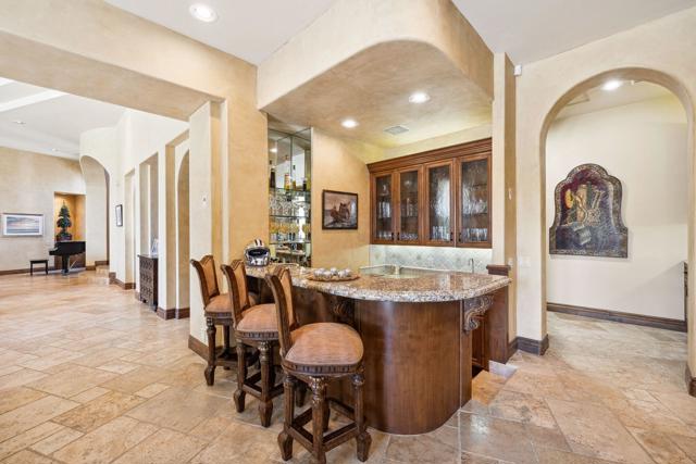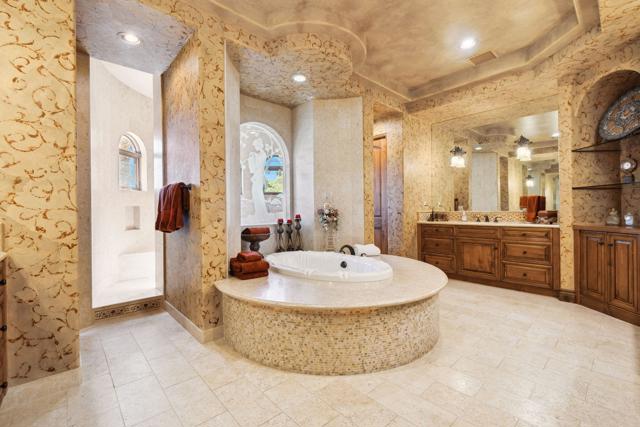 ***Furnished w/ Owned SOLAR* Welcome to a stunning Tuscan-inspired estate, an architectural masterpiece that embodies the perfect balance of old-world European charm & modern luxury. Nestled on over an acre of pristine grounds in the heart of Rancho Mirage, this breathtaking Mediterranean compound is located in an exclusive gated enclave at the end of a quiet cul-de-sac. Designed to captivate and inspire, this resort-like retreat offers unparalleled privacy, elegance, and sophistication. From the moment you enter, soaring ceilings, exquisite travertine flooring, & walls of glass invite in abundant natural light, framing picturesque views of the lush gardens & mountains. The expansive great room features a grand fireplace and seamlessly flows into the formal dining area & full wet bar, creating the ultimate space for entertaining. The gourmet kitchen is a chef's dream, adorned with custom wood cabinetry, premium granite countertops, & a massive center island. State-of-the-art appliances, a built-in refrigerator, & a walk-in pantry complement an intimate breakfast nook overlooking the serene outdoor setting. A climate-controlled wine cellar provides an elegant space for your most prized collection, while the estate's open floor plan ensures an effortless indoor-outdoor lifestyle. This estate boasts five oversized bedrooms, each with spa-like en-suite bathrooms, offering the perfect blend of comfort and refinement. The primary suite is a sanctuary, featuring a private fireplace, spa-inspired bathroom with a deep soaking tub, dual vanities, and a large walk-in shower. A private casita provides an ideal guest retreat, ensuring comfort and privacy for family & visitors. Step outside to a private paradise, where the resort-sized infinity-edge pool, cascading spa, and custom rock waterfalls create a setting of pure tranquility. Surrounded by towering palms, lush gardens, and vibrant desert flora, this outdoor oasis is designed for grand-scale entertaining or peaceful relaxation. A fully equipped outdoor kitchen & bar, multiple lounge areas, & a covered patio invite you to indulge in the ultimate alfresco lifestyle. This exceptional estate also includes a 50-ft motorhome garage, four-car garage, & dedicated workshop area, making it a rare find for car enthusiasts & collectors.