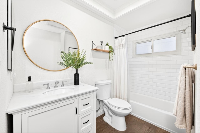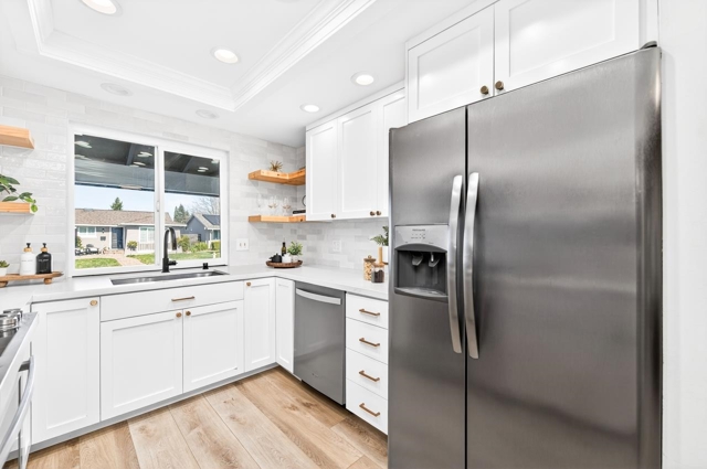 Tucked away in a wonderful court location, this charming single-story home offers comfort, style, and thoughtful upgrades throughout. The beautifully remodeled kitchen features quartz countertops, white shaker cabinetry, and new wide-plank flooring, with plush new carpet in the bedrooms for added warmth. Fresh interior paint and a spacious laundry room enhance everyday living. The primary suite includes a beautifully updated bathroom with an expanded shower, complemented by a recently remodeled hall bath. Step outside to enjoy a private, serene backyard and an exceptional outdoor retreat—an expansive covered patio with a gabled roof and pavered patio, perfect for entertaining or relaxing year-round. Just a short stroll to the community park, shopping, quaint restaurants, and all three levels of award-winning schools. Views: Ridge