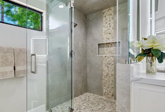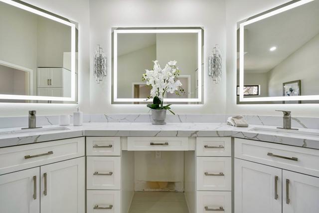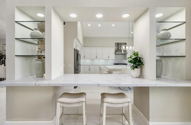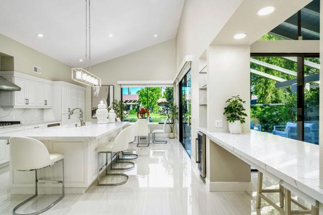 The Owner is selling to move back home. Every inch of this chic, contemporary Tucson model has been completely remodeled and thoughtfully redesigned for open, floor-plan living.The Spectacular Chef's Kitchen is the heart of the home, featuring a massive 38-sq-ft quartz island, Bosch dishwasher, double ovens, wine and beverage coolers, stainless steel appliances, cooktop with custom hood, quartz backsplash, new cabinetry, and a spacious pantry--ideal for both entertaining and everyday living.Designer Finishes include 24'' x 48'' cream porcelain tile throughout, 5'' baseboards, fresh interior paint, LED lighting. The dramatic living area is highlighted by a floor-to-ceiling porcelain fireplace wall showcasing a 75'' flat-screen TV and sleek horizontal electric fireplace.All Bathrooms have been fully gutted and rebuilt with raised quartz countertops, custom mirrors, crystal lighting, frameless walk-in showers, new fixtures, and cabinetry. The oversized primary ensuite is a true retreat, featuring a freestanding soaking tub, dual sinks, a frameless shower, and elegant finishes throughout.Your Private Outdoor Living is equally impressive with a built-in BBQ, checkerboard faux-grass patio, and serene lake views accented by a water-fountain feature--perfect for relaxing or entertaining. No pesky golf-balls here!!Located in the quiet center of The Lakes Country Club, known for its beautifully remodeled clubhouse, full-service Lifestyle & Wellness Center, 27 holes of golf, and one of the most fun, friendly, and active communities in the valley. Just three doors from a community pool & spa. Offered turnkey--just bring your toothbrush and begin living the good life!