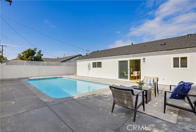 Welcome to this stunning, fully remodeled single-story coastal pool home situated on a desirable corner lot in Huntington Beach, just minutes from the beach and harbor. With 3 bedrooms and 2 beautifully remodeled bathrooms, this turnkey property captures the essence of the Southern California beach lifestyle—laid-back, stylish, and built for outdoor living. The home has been completely upgraded, featuring a new roof, new windows and doors, new main electric panel and a new A/C system for year-round comfort. Inside, luxury vinyl plank flooring flows throughout the open living spaces, leading to a designer kitchen showcasing quartz countertops, white shaker cabinetry, and premium KitchenAid appliances—ideal for entertaining after a day at the beach. Both bathrooms have been fully remodeled with upscale finishes, including a spa-inspired walk-in shower with a frameless glass enclosure. Step outside to your private backyard retreat, where the pool has been fully renovated with new tile, plaster, plumbing, and all-new poured-in-place concrete coping and decking. All-new landscaping enhances the resort-style feel, creating the perfect setting for relaxing or hosting guests. Enjoy the freedom of no HOA, plus possible RV or boat storage, making this an ideal home for coastal enthusiasts. With a single-level layout, extensive upgrades, and an unbeatable location near the coast, this Huntington Beach gem is truly move-in ready and designed for the ultimate beachside lifestyle.