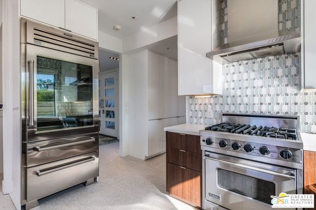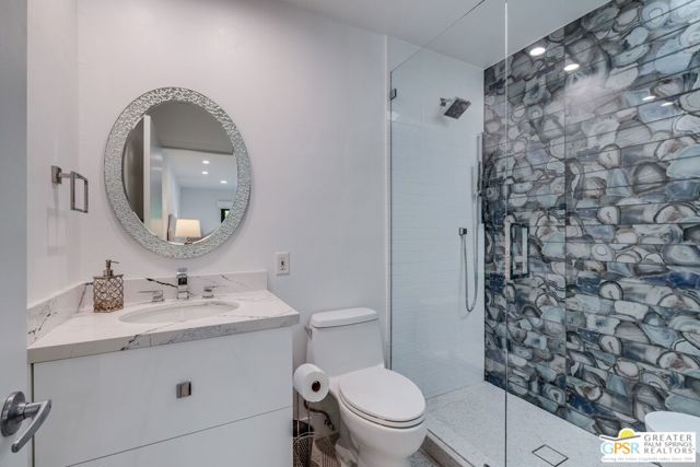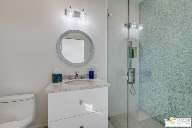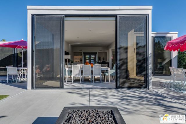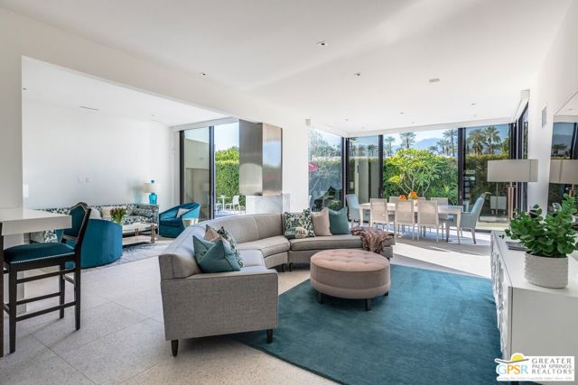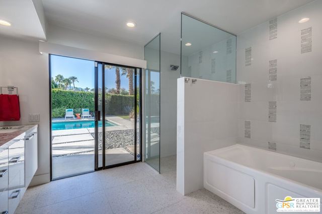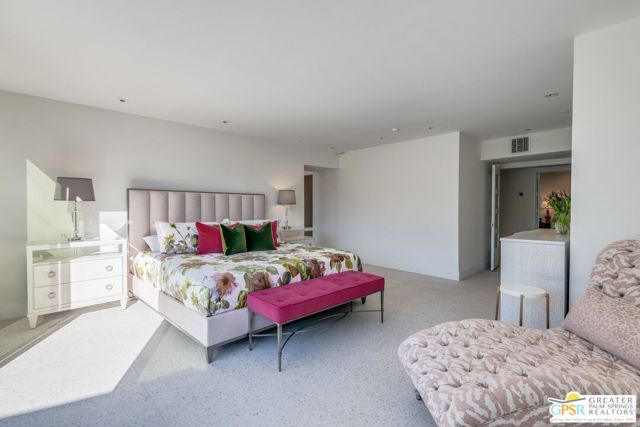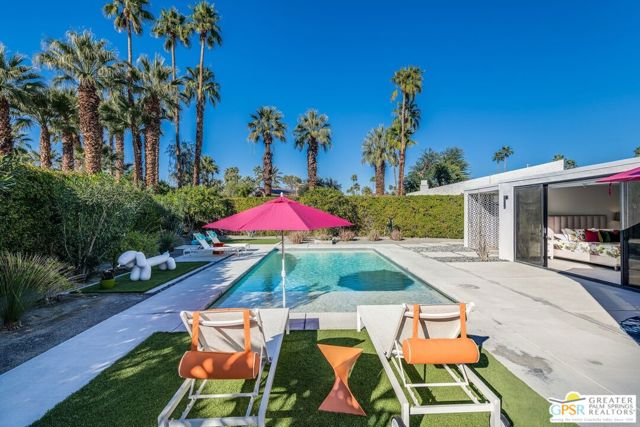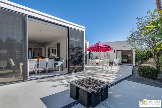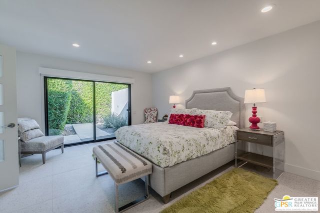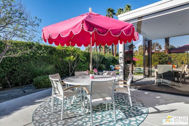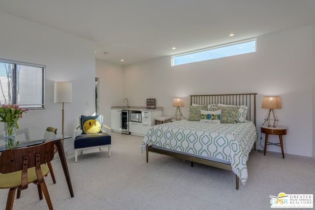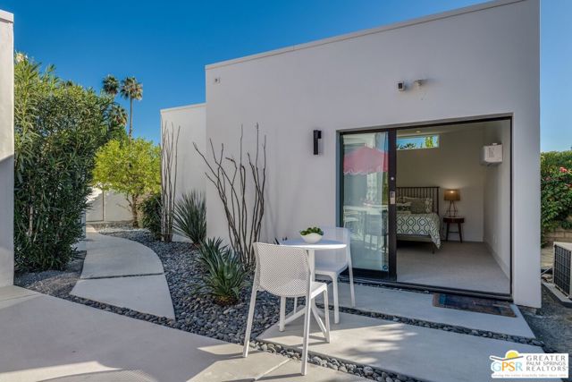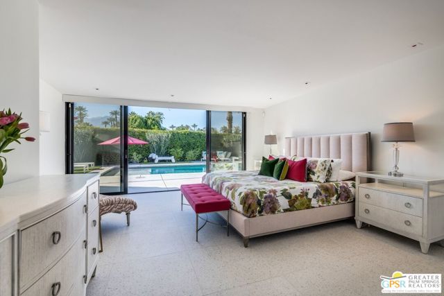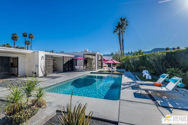 Situated on a quiet cul-de-sac in the highly desirable Tamarisk neighborhood, famed architect Donald Wexler has designed a private oasis of calm and harmony. After undergoing an extensive and tasteful remodel in 2022, updated features include new roof, new terrazzo flooring, new kitchen updates, new bathrooms, new outdoor shower, fresh paint throughout, and new motorized blinds. The walls of glass and high ceilings allow natural light to fill the space and create a light and airy feeling. Large primary suite offers floor to ceiling glass, pool and mountain views, and remodeled bathroom with access to pool and large walk-in closet. Multiple access points to oversized patio and pool area allows for seamless indoor/outdoor living. The completely remodeled detached one bedroom casita with kitchenette is a perfect landing spot for visiting guests. This home is a must see.