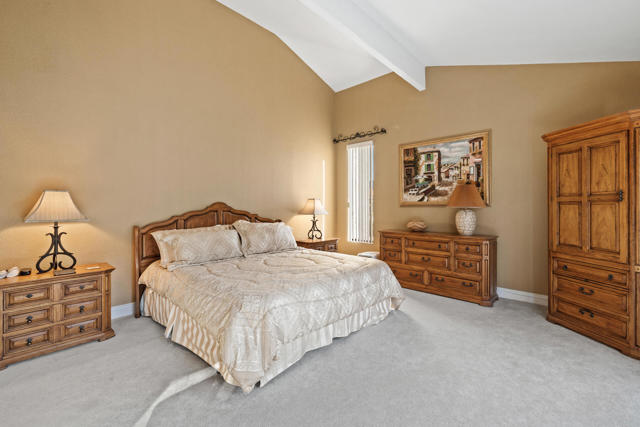 Close to Coachella & Stagecoach. Private home in gated Los Lagos community of Indian Wells. 3 bdrm + 3 bath with 2 master suites. High wood beamed ceilings and a private pool & jacuzzi, + 4 community pools & jacuzzis that are heated year-round. The complex also has tennis & pickle ball courts. This popular Bonita model home overlooks a stream and greenbelt with native fish & birds. Close to many restaurants, shopping areas, and world class golf courses. Solar panels installed to reduce electricity costs, saving tenants hundreds of dollars - particularly in summer. Half price summer rates ($3500/mo.). We also offer reduced rates for anyone directly affected by the LA County fires. Call for availability. April 10K