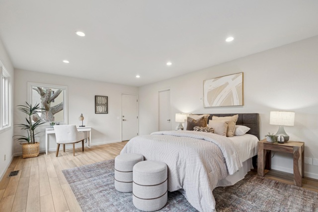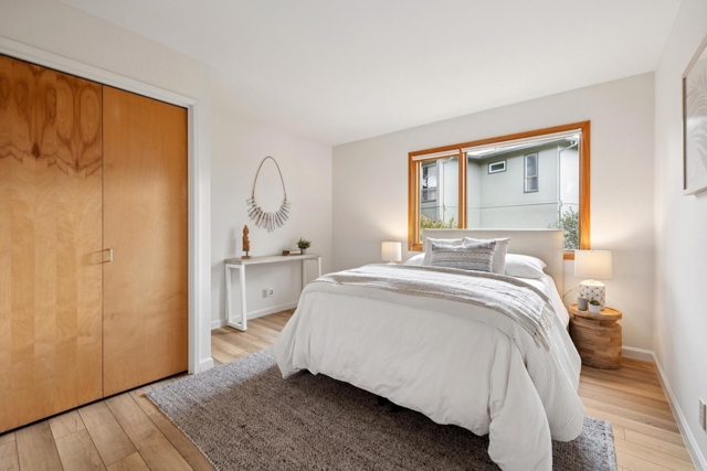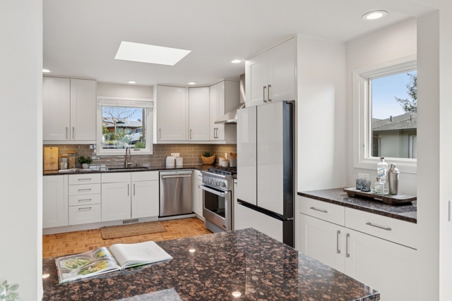 Striking 4BD/2.5BA contemporary home tucked away on a sought after El Cerrito cul-de-sac with unobstructed, panoramic Bay views. The main level offers an airy open floor plan with high ceilings, clerestory windows, and a spacious living room anchored by a central fireplace. A chef’s kitchen connects seamlessly to the dining room and opens to a private deck, ideal for BBQs, sunset cocktails, and lingering afternoons. The lower level features a serene primary suite with a spa-like bath complete with heated floors, floating vanity, and a custom walk-in closet. Two additional bedrooms, a hall bath, and a dedicated laundry room complete this floor. A large flex space with storage can be used as a fourth bedroom or den. At the bottom of the property, a separate-entry office or studio offers excellent work-from-home or creative potential. An attached two-car garage with built-in storage adds everyday convenience. Upgrades include owned solar, a new roof in 2025, and expanded front deck. Ideally located near Madera Elementary, AC Transit, BART, and El Cerrito’s parks and open spaces.