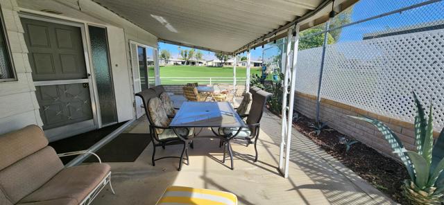 This Golf Course property offers Fairway and Mountain views and is ready for immediate occupancy. It is fully furnished and includes a golf cart. The spacious living and dining areas flow into an updated kitchen equipped with quartz countertops, ample cabinetry, and modern appliances. The primary bedroom features a generous walk-in closet and direct access to a 2nd patio area, providing an ideal setting to appreciate mountain views while enjoying your morning coffee. The en-suite bathroom is appointed with a dual sink vanity, soaking tub, and walk-in shower. The second bedroom has an adjoining bathroom to ensure privacy for visiting guests. Palm Desert Greens Country Club, situated in the heart of the desert, is regarded as one of the premier 55+ communities in the region. You Own the LAND and the monthly HOA fee of $400 includes 24/7 guard-gated security, cable television and internet, trash service, three swimming pools, tennis, bocce and pickle ball courts, fitness center, restaurant and bar access, FREE GOLF and so much more. Whether you are seeking a vacation residence or a retirement home, we encourage you to visit and explore why this property could be the ideal choice for your new home.