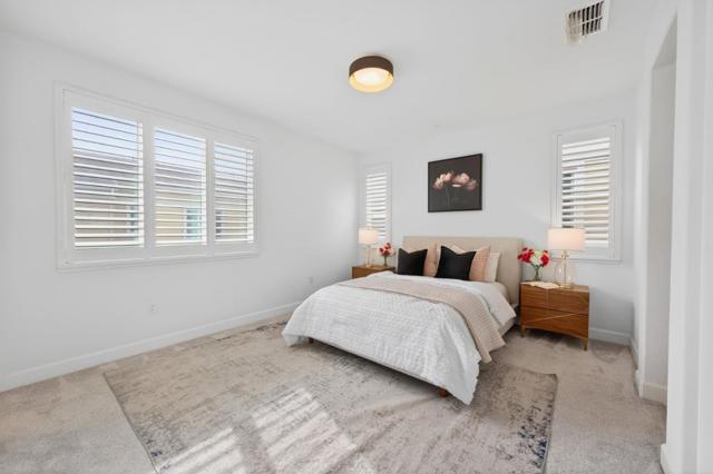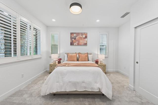 Discover elevated living at Avenue One. This turnkey, upgraded 4-bedroom, 3.5-bath end-unit townhome is just 9 years old and is located on the interior side of the community, offering a quieter setting away from freeway exposure. The sought-after floor plan features the community's largest kitchen island, paired with an expansive pantry. The light-filled open-concept living level flows from the kitchen to the living and dining areas and extends to a private balcony. Finishes include granite countertops, stainless steel appliances with a gas range, soft-close cabinetry, recessed lighting, custom fixtures, and built-in storage. A first-floor bedroom with a full bath offers flexibility for guests or a home office. Upstairs, the primary suite features dual vanities, a walk-in shower, a soaking tub, a walk-in closet, two additional bedrooms, and a side-by-side laundry. Additional highlights include wired AT&T Fiber internet, 3-zone HVAC with independent climate control including an Ecobee smart thermostat, smart-home features, and a two-car garage equipped with 240V EV-ready outlet. Residents enjoy a clubhouse with pool, spa, fitness center, BBQ areas, playground, gated dog park, nearby parks, and convenient access to Costco, Village Oaks, VTA Light Rail, and Highways 85 and 101.