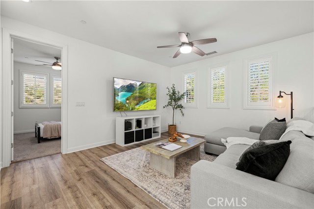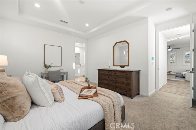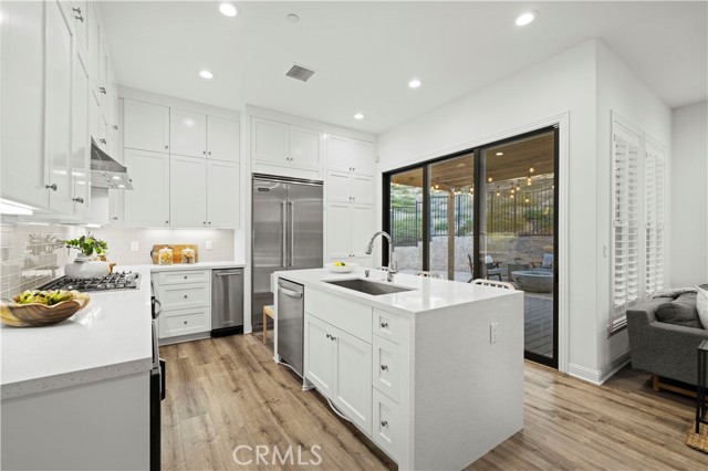 Looking for the best in Luxury living? Well, look no further! Located in The Canyons Community in the highly sought-out area of Porter Ranch, this home offers 4 Bedrooms / 3 Baths and a spacious loft! As you enter, you are welcomed to the foyer and will immediately notice the luxurious laminate flooring and natural light flow throughout the home's open, airy layout. The main floor features a large Great room perfect for large family gatherings, dining area and a bedroom downstairs perfect for an office/guests. The inviting top-of-the-line gourmet kitchen is clad with premium finishes including Quartz countertops with waterfall, up to the ceiling custom cabinetry, stainless steel appliances with Viking refrigerator and center island. Three bedrooms upstairs include a Primary Suite that is sure to impress, featuring coffered ceilings, large walk-in closet, a luxurious "Hotel Style" Primary Bath with custom Quartz countertops, dual sinks, soaking tub and a separate walk-in shower. Other features include PAID OFF SOLAR PANELS, a loft upstairs, laundry room on second level, plantation shutters, Premium lot (one of the largest yards in the community) and a 2 car garage. Step outside to relax and unwind in your own backyard! Featuring a low maintenance garden, artificial turf, a cozy covered patio perfect for bbq’s and entertaining guests. Canyon Oaks Community is guard gated, offers a Banquet room with a full kitchen, indoor / outdoor sitting area, bbq stations, a community pool, cabanas, tv’s, spa and kiddie pool. Located within the highly acclaimed Porter Ranch Community School and minutes away from "The Vineyards” this plaza features Whole Foods Market, restaurants, Pete's Coffee, movie theater, shopping and more. This residence is LUXURY LIVING AT ITS BEST!!