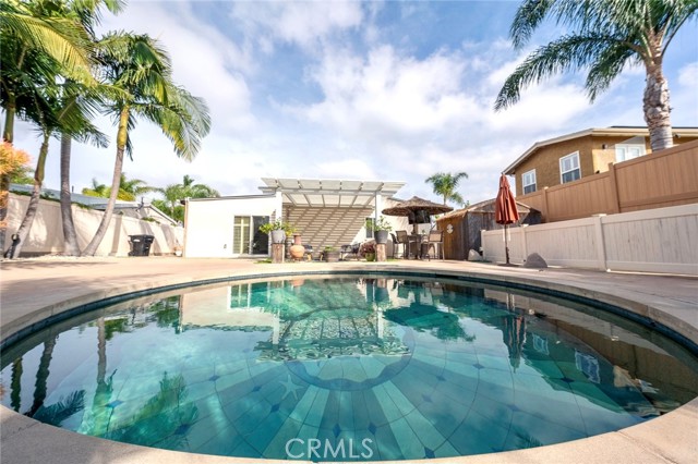 If you've been waiting for a Bay Ho home that truly has it all - this is it. Set on a 6,300 sqft lot designed for flexibility, the backyard feels like your own private resort. The heated saltwater pool features an innovative movable tile floor system that transitions from ground level to 6 ft deep in approximately 90 seconds and can be stopped at any depth in between. It also allows for additional flat yard space when desired and includes a built-in resistance current for exercise. Relax under the pergola lounge area or gather around the gazebo tiki bar with mounted TV. Welcome to your private getaway - a modern 3-bedroom, 2-bath home sitting on your own slice of San Diego paradise. Featuring two fully remodeled bathrooms (2026), brand-new flooring (2026), fresh exterior stucco (2026), updated interior finishes, and a separate full-size laundry room, this home is truly move-in ready. The living room showcases a sleek electric fireplace, built-in wired speakers, smart home features, and exterior security cameras. The kitchen offers white cabinetry, stainless steel appliances, granite countertops, abundant storage, and a large island with seating for four that flows seamlessly into the dining area. The primary suite includes a spacious walk-in closet with custom built-ins, a dedicated office space, direct backyard access, and an updated bathroom with dual sinks and a glass walk-in shower. Secondary bedrooms are bright and versatile. Fenced front and rear yards, dual driveways with automatic sliding gates, and a lockable entry gate provide privacy and security. An EV charging outlet and professional low-maintenance landscaping add convenience and curb appeal. The extended driveway offers ample parking and includes FOUR storage sheds. Located just minutes from La Jolla and Pacific Beach, close to beaches, dining, and everything San Diego has to offer yet tucked into one of Bay Ho’s most desirable pockets. And yes, the solar is PAID OFF.
