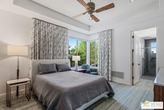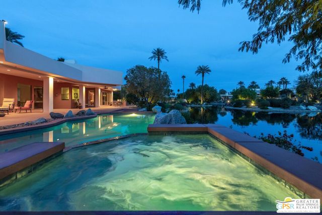 Located within the coveted lakefront enclave of Waterford in Rancho Mirage, this exceptional residence captures sweeping mountain panoramas and the tranquil beauty of swans gliding across shimmering water just beyond the terrace. The home is thoughtfully designed for both grand entertaining and relaxed desert living, with generous indoor and outdoor spaces that flow effortlessly together. Inside, the architecture is warm and inviting, blending refined Southwest character with timeless sophistication. A formal living room anchored by a sculptural fireplace opens to an expansive great room, while a well-appointed wet bar enhances the home's entertaining appeal. The chef's kitchen is highly functional and beautifully scaled, featuring Sub-Zero refrigeration, double Dacor ovens, dual dishwashers, and dual sinks ideal for hosting everything from intimate gatherings to large-scale events. The primary suite is a true private retreat, offering a separate sitting area, two walk-in closets, an in-home sauna, and a recently reimagined spa bath complete with a jetted soaking tub and a dual-entry shower. Guest suites are thoughtfully positioned to provide comfort and privacy for visitors.High ceilings, exposed beams, and skylights fill the interiors with natural light, while curated architectural details and art walls add depth and character throughout. Sliding glass doors open to the lakefront terrace, where outdoor living takes center stage with a pool and spa, built-in barbecue, and an inviting fire pit perfect for sunset evenings overlooking the water. Additional amenities include a three-car garage with custom built-ins and an oversized laundry room designed for everyday convenience. Positioned on a premier waterfront lot, this residence offers a rare combination of privacy, views, and lifestyle an elegant expression of elevated desert living in one of Rancho Mirage's most desirable communities.