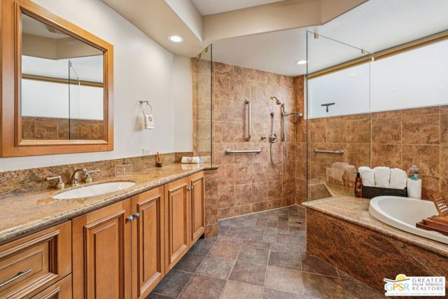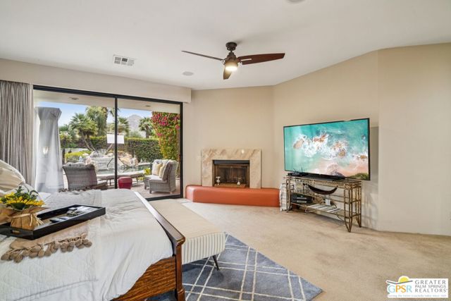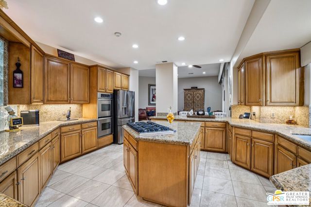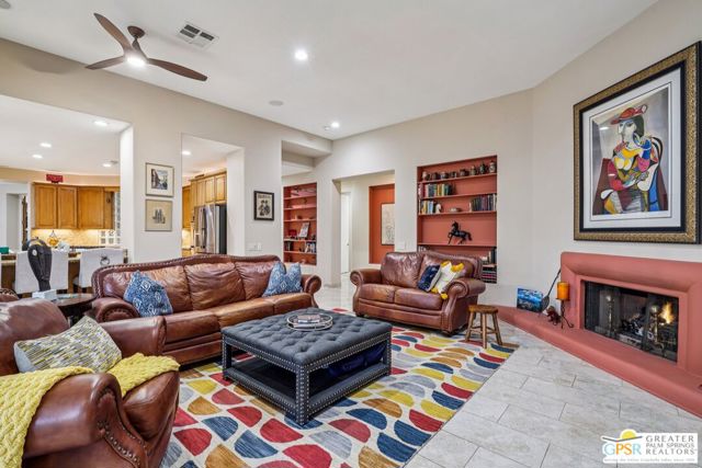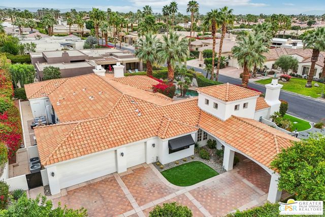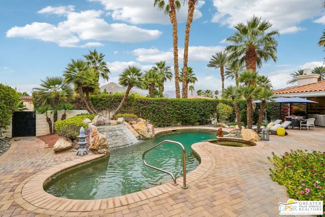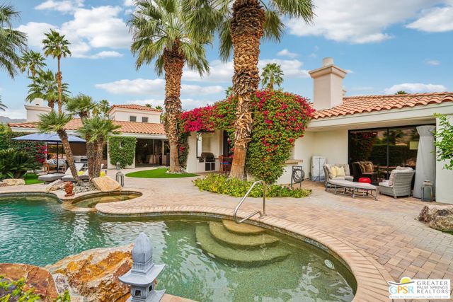A gate within a gate this is a mini-estate of rare distinction. A Ministrelli-built residence, the crown jewel of Painted Cove. Set on an expansive 18,295 sqft lot with sweeping southern mountain views, the 3,834 sqft Santa Barbara style home is impeccably maintained and framed by lush gardens and a free flowing saltwater pool. Four bedrooms including a flexible office suite, 3.5 baths, formal living and family rooms, three fireplaces, and a triple garage create a refined and very livable layout. The chef's kitchen features bull-nosed slab granite, full backsplash, and premium Viking and Bosch appliances. Located within an exclusive 79-home gated enclave in South La Quinta, moments from world-class dining, shopping, and championship golf, this is desert living at its most elevated.