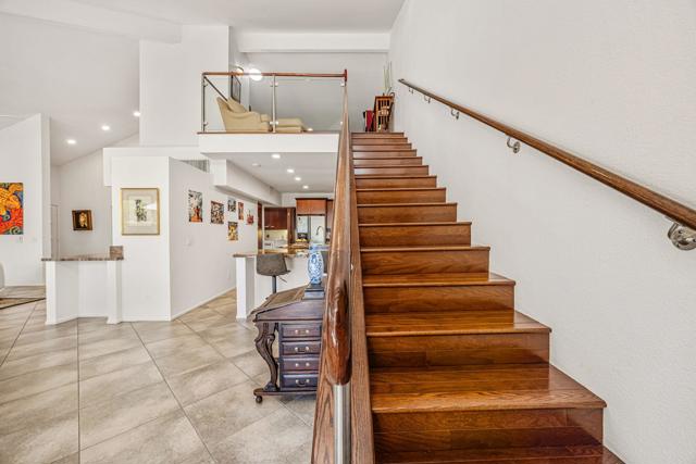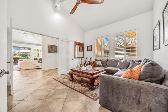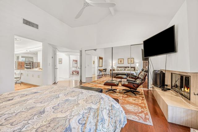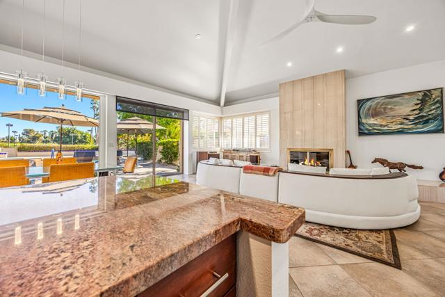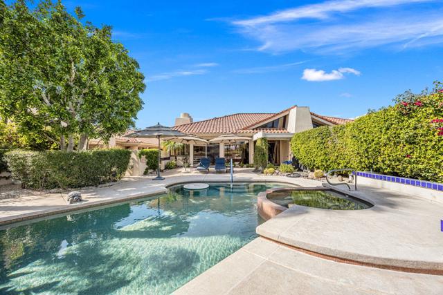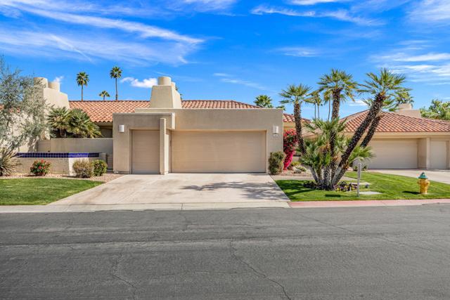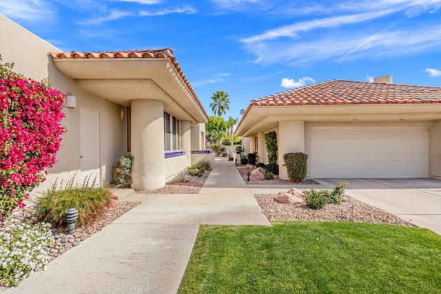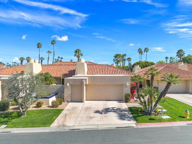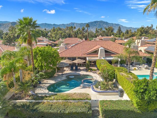 Set on one of the most desirable locations in the community, this residence boasts one of the largest back patio in the complex and a refined desert lifestyle with golf course views. Once the home of Academy Award-winning actress Jane Wyman--the first wife of President Ronald Reagan--this property was chosen for its peaceful setting away from street noise, offering a sense of privacy and retreat that's hard to find.Highly sophisticated and beautifully upgraded, this 3-bedroom (one currently used as a den), 2.5-bath + loft condominium showcases designer finishes throughout. The completely remodeled kitchen is both stylish and functional, while the main living area features vaulted ceilings, a statement fireplace, a wet bar, and a dramatic wall of windows that floods the space with natural light. High-end shades provide privacy and sun protection when desired.A standout feature is the chic loft addition above the kitchen--enhanced by a solar tube for gorgeous natural light--widely considered one of the finest loft designs in Rancho Mirage Country Club to date.The luxurious primary suite offers its own cozy fireplace, creating a true sanctuary, along with an exceptionally updated bath featuring a beautifully redesigned walk-in shower. Additional highlights include 24 owned solar panels for energy efficiency and long-term value.Step outside to an expansive, private outdoor living space complete with a pool and spa, perfectly positioned to overlook the golf course and nearby tennis/pickleball courts--ideal for entertaining or quiet evenings under the desert sky. Perfect as a full-time residence or a sophisticated seasonal escape, this home delivers comfort, style, and the very best of the desert lifestyle.