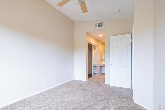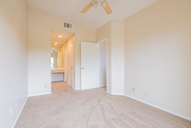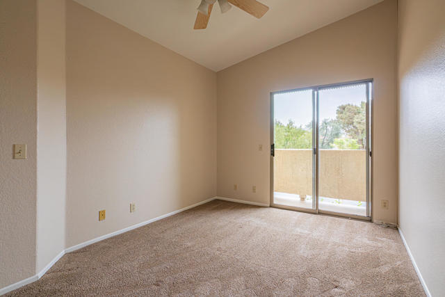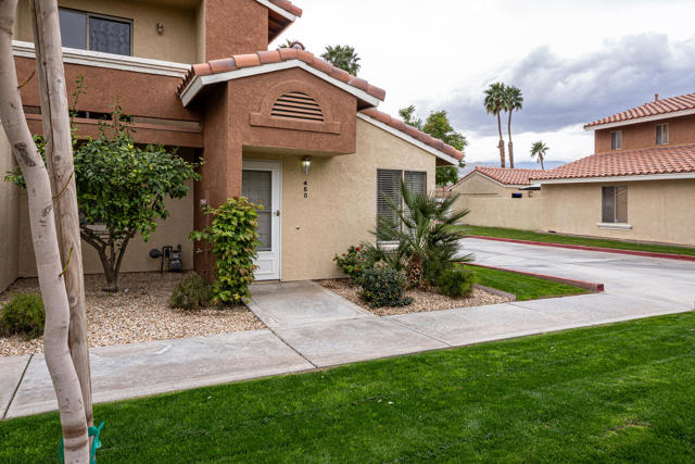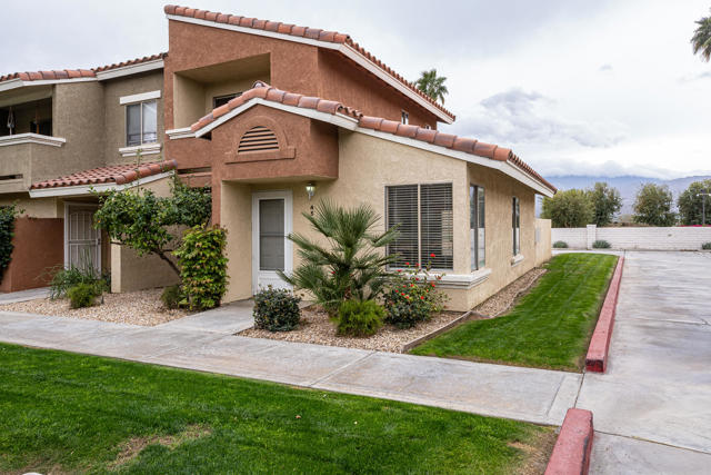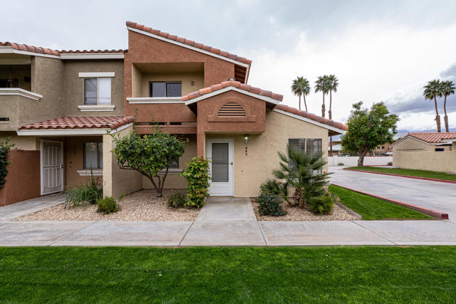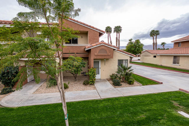 Beautiful 2-bedroom, 2-bath condo located in a desirable gated community in Palm Desert. This spacious floor plan offers ideal separation of space with one bedroom downstairs and a private upstairs bedroom -- perfect for guests or a home office setup. The unit is unfurnished and includes a private garage. Enjoy resort-style living with access to two sparkling community pools, all within a secure and well-maintained neighborhood. Conveniently located near shopping, dining, and golf.