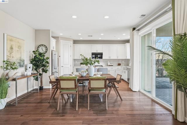 Experience refined living in this meticulously model home, perfectly situated in the sought-after Tananger Heights community. The thoughtful floor plan features 4-bed and 3-bath, with a main-level bedroom and full bath—ideal for guests or a secluded home office. At the heart of the home, the gourmet kitchen is a chef’s dream, boasting a professional appliance package, custom cabinetry with pull-out organizers, a touchless FOTILE range hood, and sleek contemporary tile countertops. Seamless hardwood flooring leads you through the sun-drenched great room to a signature California Room, creating a perfect indoor-outdoor flow for year-round entertaining. Retreat upstairs to a versatile loft with built-in storage. The primary suite featuring automated window treatments, and a custom-organized walk-in closet. Sustainable luxury is built-in with owned solar, a Tesla Powerwall, EV charging, a tankless water heater, and dual-zone Nest HVAC. Outside, enjoy a farm-to-table lifestyle in a landscaped backyard, complete with custom planters and expansive views. Ideally located just minutes from downtown Pleasant Hill and Walnut Creek, with convenient access to I-680, Hwy 24, and three BART stations. This home has so much more to offer!