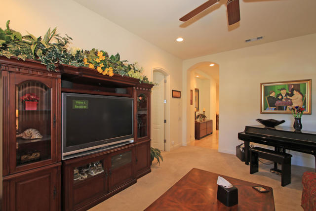 Best priced Santa Rosa Priced to sell on the 8th fairway of this Fabulous Arnold Palmer Course ,,3 bedroom 3and a half bath ,Great room ,dining room ,media or family room ,officed or den total over 3800 sq ft..3 car garage ,12 foot soffeted ceilings,European style maple cabinets,slab granite counters 8 ft patio doors,Jacuzzi whirlpool tub ,seperate shower in master bath ,gourmet kitchen ,security system , being sold partialy furnished . buyer responsible for required social membership $10,000