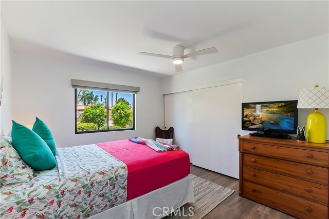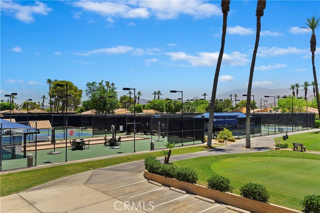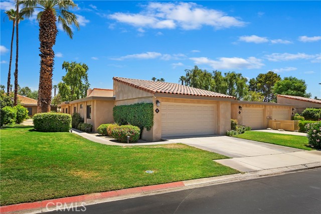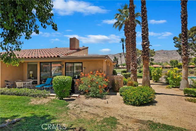 Available Jan-Apr 2027! Escape to the warmth and sunshine of Sunrise Country Club, one of the desert’s most sought-after winter destinations. This beautifully maintained single level 1,700 SF condo offers 3 bedrooms and 2 bathrooms, designed for comfort, relaxation, and effortless seasonal living. Sunrise Country Club is known for its vibrant, active lifestyle. Guests can enjoy an 18 hole executive golf course, tennis, pickleball, bocce, fitness center and access to 21 pools, all within the beautifully landscaped, gated community. Snowbirds love the social calendar as there are frequent seasonal events, group activities, and opportunities to meet neighbors and make friends during your stay. Inside, the home is bright, spacious, and fully equipped. The generous primary suite features a Cal King bed, 50” smart TV and an en-suite primary bath with wraparound countertop and large walk-in shower. A guest bedroom with a queen bed and a third bedroom with two queen beds is perfect for visitors. The second bathroom is conveniently located in the hallway. The kitchen is updated with all new appliances and everything you need to cook a homemade meal. The designated laundry room just inside the spacious two car garage and features a new washer and dryer. The expansive living room features a 65" Smart TV with DirecTV. Step through the living room’s sliding glass doors to the covered patio and enjoy a tranquil pond and fountain view, the ideal backdrop for morning coffee or evening unwinding. Enjoy gorgeous blue sky days and stunning mountain views from the heated jacuzzi located just steps from the front door. You’ll be just minutes from world-class golf, scenic walking paths, excellent dining, shopping, casinos, art galleries and everything that makes the Coachella Valley a premier winter getaway. 28 day stay minimum.