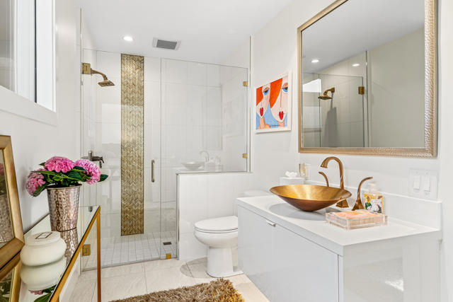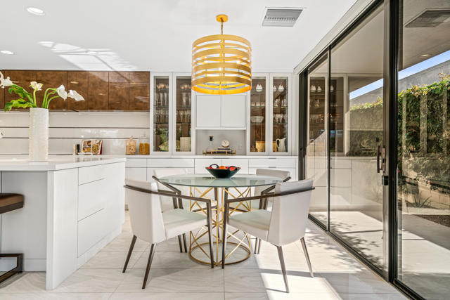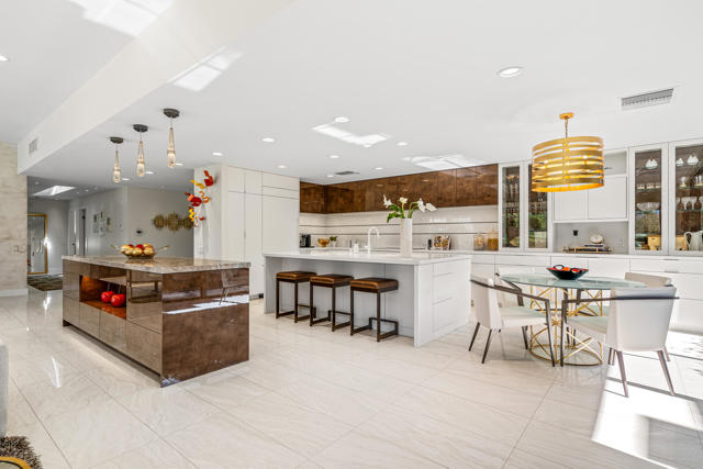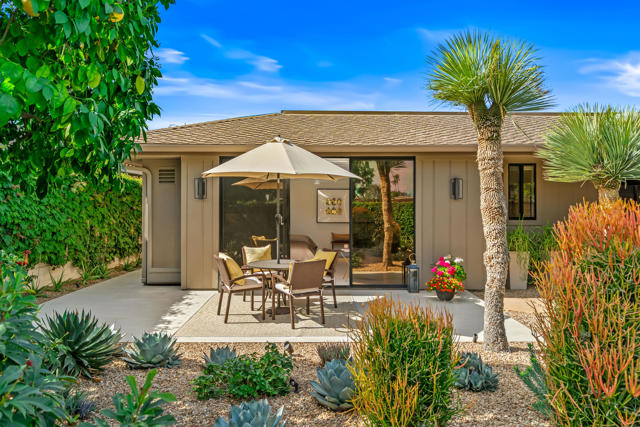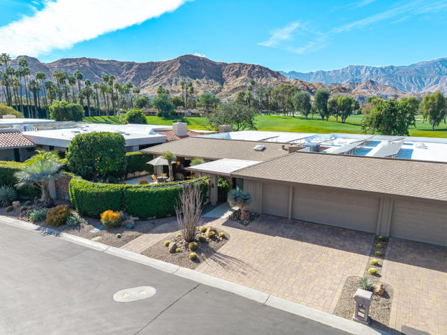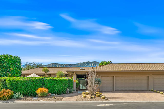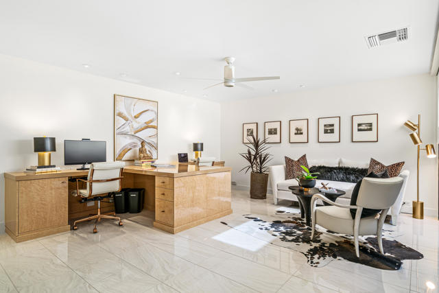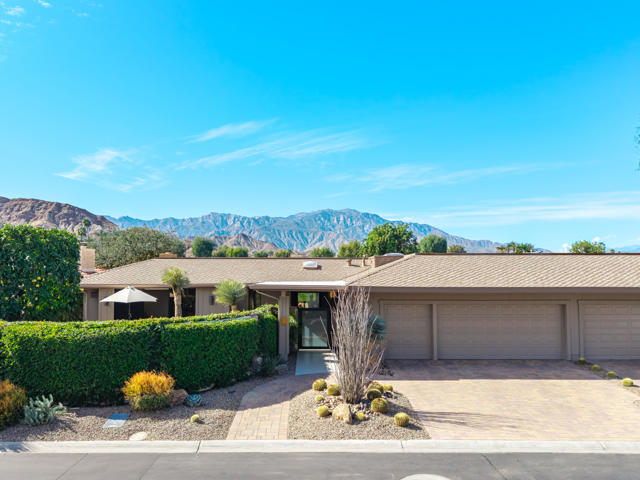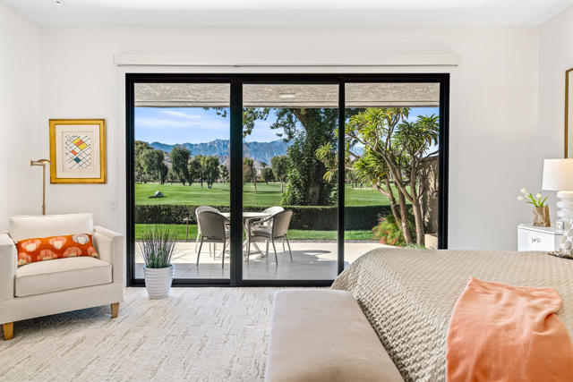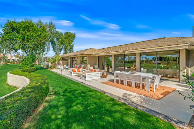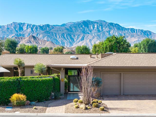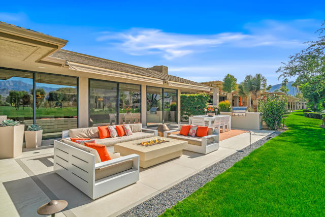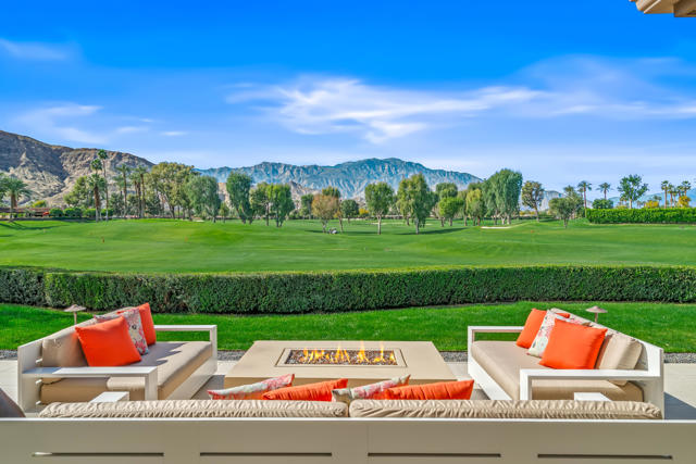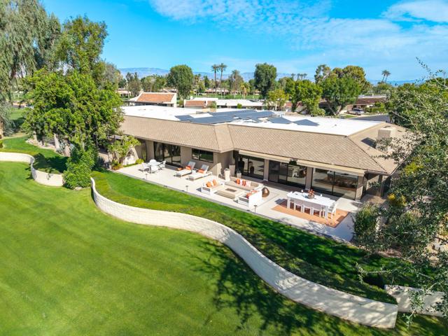 Spectacular west-facing residence sits on one of the most coveted panoramic lots in The Springs Country Club, offering sweeping fairway views, endless desert sky, and dramatic sunsets over Mount San Jacinto.Enter through twin pivot doors into a light-filled interior where soaring ceilings and walls of glass immediately draw the outdoors in. The home balances architectural presence with everyday comfort, delivering a calm, sophisticated environment designed for effortless luxury living.This is a true top-to-bottom rebuild completed to exceptional standards. It was thoughtfully designed and finished without consideration for resale profit--this is not a flip. Every surface, system, and detail reflects high-quality materials, expert craftsmanship, and careful planning. The home presents like new construction. Includes solar for low cost energy.Offered fully furnished, the custom pieces were selected specifically for the space to enhance both the serene setting and the overall luxury experience.The west-facing outdoor living area is designed for year-round enjoyment, with multiple lounge spaces, firepit, dining area, and built-in grill--all positioned to capture changing skies, mountain light, and miles of golf course views.The floor plan includes three ensuite bedrooms, with one guest suite currently configured as a custom double office. The primary suite offers spa-level finishes and its own stunning panoramic outlook.For buyers seeking a rare combination of premier location, exceptional quality, and move-in perfection, this is a must-see.