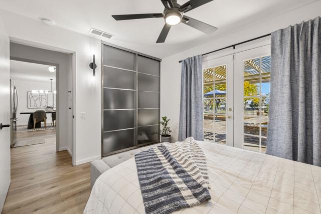 Stylishly renovated and offered fully furnished, this inviting Palm Desert Country Club home delivers effortless desert living with a prime fairway setting. Enjoy sweeping views of Fairway #1 from a generous backyard designed for relaxation, featuring a sparkling PebbleTec pool and elevated spa with cascading waterfall. The thoughtfully updated main residence offers two bedrooms and two baths, showcasing a beautifully redesigned kitchen with quartz counters, crisp white cabinetry, modern backsplash, and stainless appliances. The LVP flooring, smooth ceilings, updated bathrooms, and newer HVAC ducting add to the home's polished feel. A permitted, detached casita provides a private third bedroom and bath--ideal for guests, a home office, or multigenerational living. Additional improvements include dual-pane windows in the living area and primary suite, a newer composition roof, updated electrical panel and subpanel, refreshed fixtures and faucets, exterior paint, and professionally landscaped grounds. A covered stone patio extends the living space outdoors, while a separate laundry/hobby room adjacent to the garage offers abundant storage plus extra workspace. Low HOA dues of only $35/month. Move-in ready, low-maintenance, and perfectly positioned--this is desert living done right.