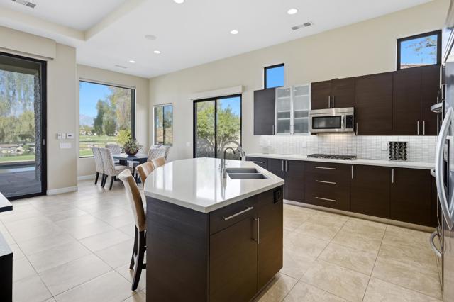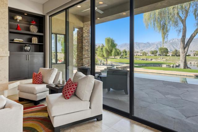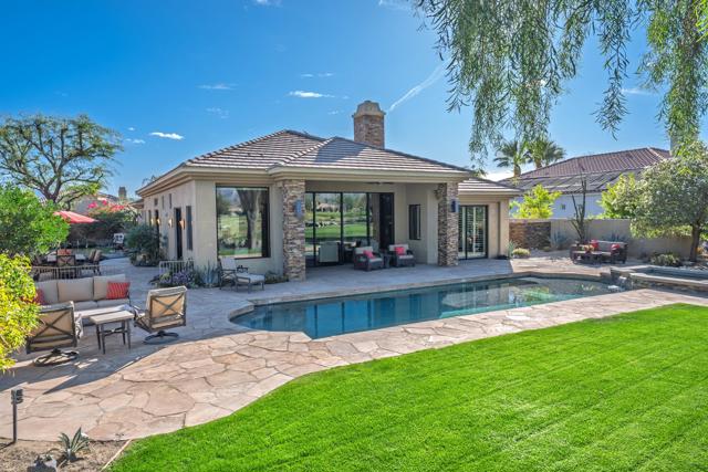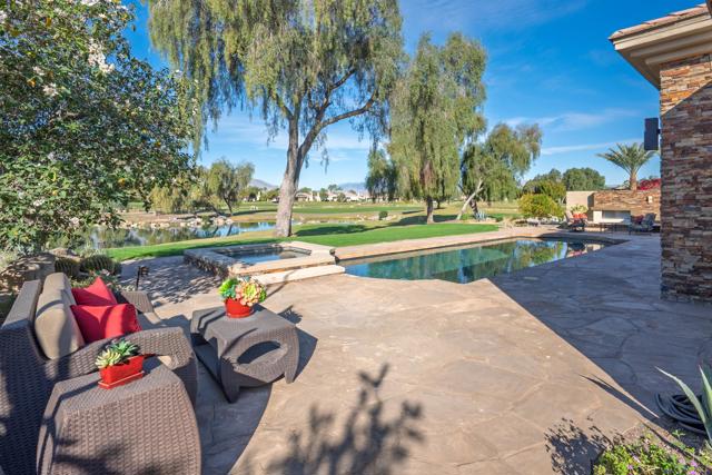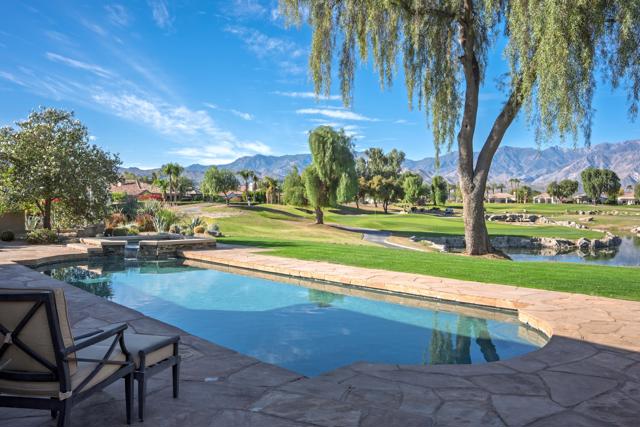 Set on one of the most coveted lots within the prestigious guard-gated community of Mira Vista, this exceptional residence commands breathtaking, unobstructed views that define true desert luxury. Perfectly positioned to capture multiple fairways, a shimmering lake, cascading waterfall, and dramatic panoramic mountain vistas, the setting is both rare and remarkable--offering privacy, beauty, and a sense of grandeur from nearly every angle. Beautifully and thoughtfully remodeled, the home reflects refined sophistication with a fresh, contemporary aesthetic. Offering 3 bedroom suites, 3.5 bathrooms, an office / den and dining room this is one of the best floor plans in the community. Expansive walls of glass frame the extraordinary views while filling the interiors with natural light, seamlessly blending indoor and outdoor living. Elevated finishes, custom details, and meticulous craftsmanship are evident throughout, creating an atmosphere that is both elegant and inviting. The resort-inspired backyard is designed for unforgettable entertaining and serene relaxation. A sparkling pool and spa take center stage, perfectly positioned to overlook the fairways and lake beyond. A custom putting green offers a playful touch, while multiple lounge areas invite quiet moments under expansive desert skies. The fully equipped outdoor barbecue island kitchen sets the stage for effortless gatherings, while the outdoor fireplace with a generous seating area provides the perfect setting to enjoy beautiful desert evenings, surrounded by glowing mountain silhouettes and tranquil golf course views. A prepaid solar system enhances efficiency and blends sustainability with luxury living. This is more than a home--it is a private retreat in one of Rancho Mirage's most sought-after communities, where sweeping golf course, water, and mountain views converge with impeccable design to create an extraordinary desert sanctuary.