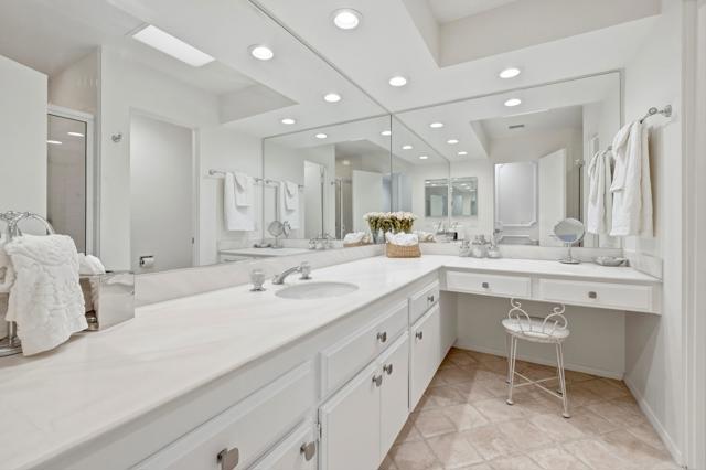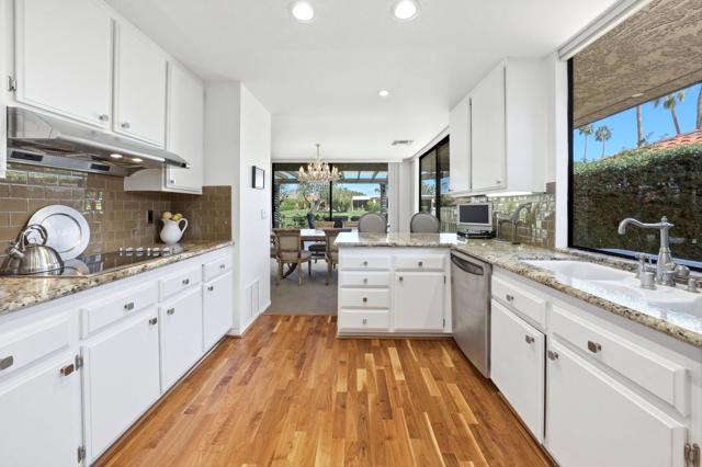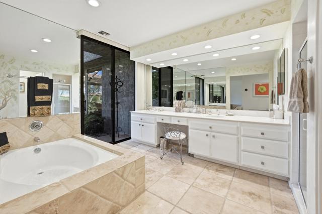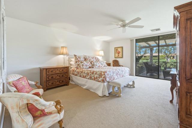 Welcome to your desert oasis in the prestigious Springs Country Club! Peace and quiet with mountain, lake and expansive green lawn views, this 4BD/4BA home is priced and ready to make it your own. Although tucked in a tranquil locale promising peace and privacy, this home is just waiting for you to bring your vibrant life into it. New roof, newer HVAC and a new refrigerator accents this lovely transitional style home. One of the 46 community pools is just 30 yards away or build your own private pool/spa in your enclosed front yard. Working from home? Any one of the four bedrooms provides a serene space away from the other rooms. After work, use the BBQ to cook for dinner el fresco on your covered patio. The HOA dues eliminate expenses by including: Fire, Liability & Earthquake Insurance, 500 MB Wi-Fi service, Cable TV with 2 DVR's and streaming services of HBO, HULU, Disney+, Paramount+, ESPN, Peacock and more. The HOA services include roof maintenance, exterior painting, notary services, in-home security system, front yard landscaping, pest control, Fitness Center, Social Membership and golf opportunities at the guest rate. The Springs - where you belong! 18 minutes from PSP Airport; 13 minutes to El Paseo.