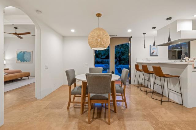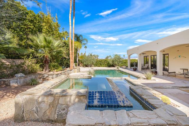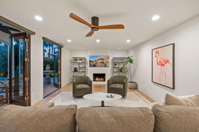 Located in the Summit area of South Palm Desert, this exquisitely reimagined solar powered residence offers the perfect blend of elegance, sophistication, privacy, and relaxed desert living.Spacious enough for full-time enjoyment yet perfectly scaled for a weekend escape or seasonal lock-and-leave, this home delivers quiet, functional living with modern lines and walls of glass that invite natural light while maintaining complete privacy.The thoughtfully designed floor plan flows seamlessly throughout. The living room features a cozy fireplace and French doors that open to a large, covered patio with direct access to the pool and spa--creating effortless indoor-outdoor living.The crisp white chef's kitchen is the heart of the home, appointed with premium Viking appliances and overlooking the pool and beautifully landscaped backyard. The dining area and family/media room connect naturally, making the space ideal for entertaining or relaxed everyday living.Three well-separated bedroom suites provide ultimate privacy for residents and guests alike. The spacious primary suite opens directly to the patio, pool, and yard, offering a true resort-style retreat.Additional highlights include newer appliances, updated HVAC, and owned solar for energy efficiency.This is refined desert living at its best--don't miss the opportunity to make it yours.