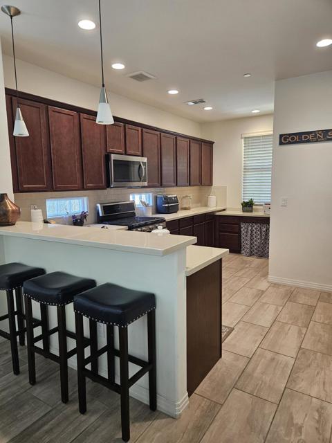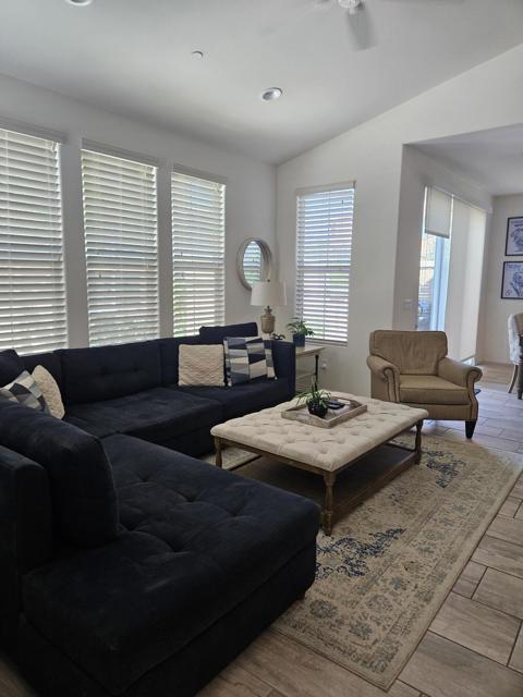 Look no further!! This condo is the perfection!! Designer decorated open living concept and lots of natural lights. Living room, kitchen plus dining area is downstairs and 3 bedrooms are on the upper floor. Main bedroom offers a king size bed and the ensuite bathroom. The 2-guest bedroom are offering queen size bed, and they share a full bathroom. The attached garage is for 2 cars convenient close to the kitchen. Laundry has its own little convenient room. The complex offers great pool and spa, gym, tennis and included in the lease is Wi-Fi, basic TV and water. A short drive from this complex are the Polo grounds and Coachella Fest is for a good walker, walking distant.