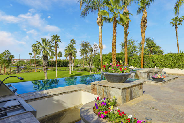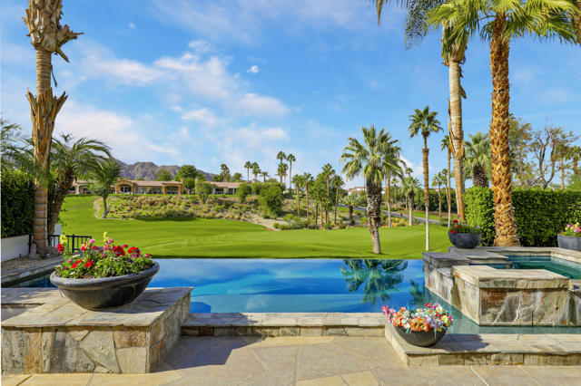 Available for March and April 2026!Experience the ultimate desert getaway in a beautifully appointed home that offers both comfort and spectacular scenery. Take in breathtaking panoramic views of the Santa Rosa Mountains and lush golf course from nearly every room. Relax by the stunning custom infinity pool, raised spa, and cascading waterfalls while soaking in the serene desert landscape.Designed for seamless indoor-outdoor living, the spacious step-down BBQ area is perfect for entertaining as guests swim and unwind. The poolside setting offers a tranquil space to relax, dine, or enjoy spectacular sunsets. Inside, tasteful and comfortable finishes create a welcoming retreat ideal for seasonal stays, with an open-concept layout that maximizes natural light and views. Three bedrooms plus an office provide ample space for family and friends.Guests can also enjoy access to Rancho La Quinta Clubs Olympic-sized pool, world class tennis courts, pickleball courts, and limited golf privileges up to six times per calendar year. Come to the Desert and make this your perfect vacation home.