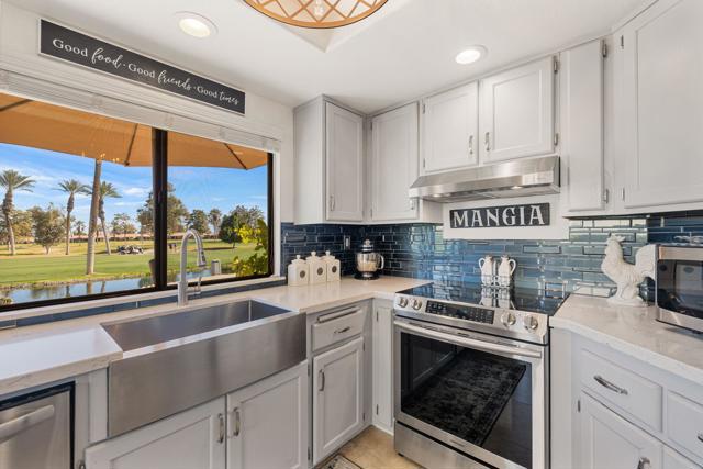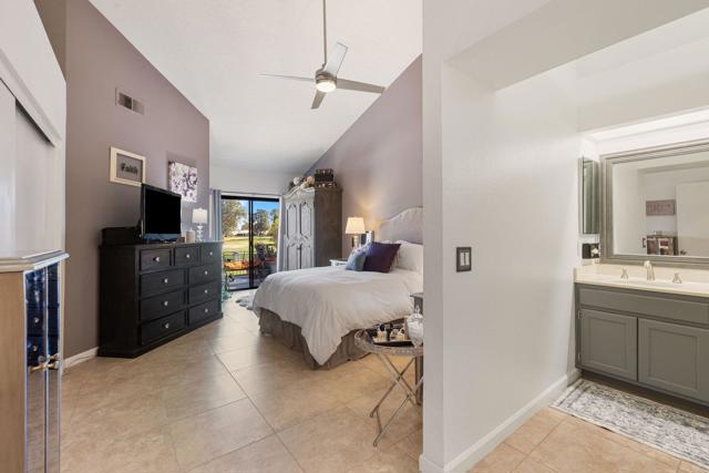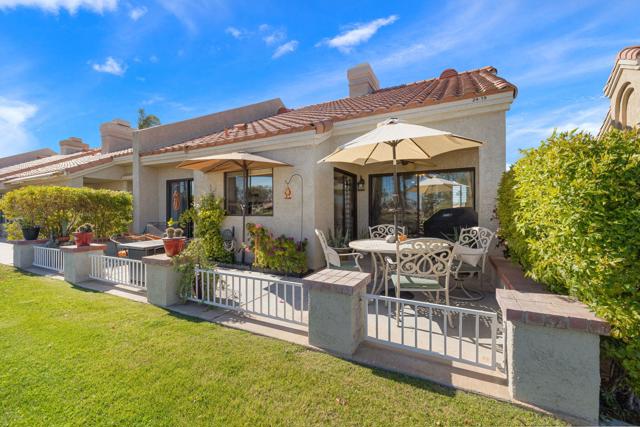 Located in the highly desirable Palm Desert Resort Country Club, this beautifully updated 2-bedroom, 2-bathroom free-standing condo offers the perfect blend of comfort and resort-style living. Ideally situated on the 5th hole of the championship golf course, the home features stunning mountain views and a tranquil waterfall just beyond the spacious back patio an ideal setting for relaxing or entertaining. Inside, you'll find a light and bright open floor plan with vaulted ceilings, plantation shutters throughout, and a cozy fireplace. The thoughtfully designed layout includes interior laundry and a deep one-car garage for added convenience. Palm Desert Resort Country Club is known for its lush green vistas, low-density planning, and spacious homes. Residents enjoy access to a challenging 18-hole championship golf course, an inviting clubhouse, and superb dining -- all contributing to a truly unique desert lifestyle experience.