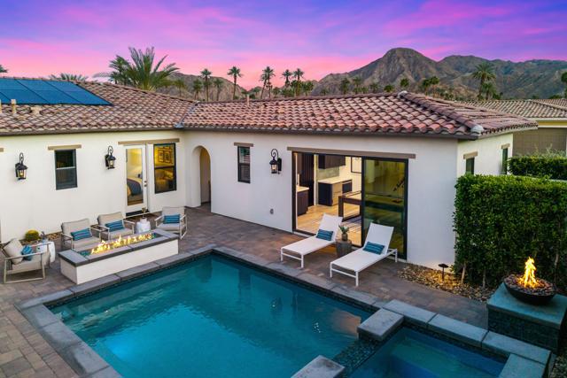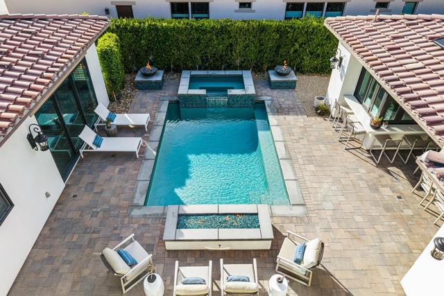 A rare offering in the heart of Indian Wells This extraordinary residence is a former developer's model home with over $300,000 in original upgrades. It has been further reimagined and customized by the current owners for elevated comfort and timeless style.From the moment you enter , the home evokes romance of Europe. Designed so that the interiors gracefully embrace and surround the pool courtyard., creating an intimate, resort-like setting reminiscent of a private villa in the south of France or Tuscany. Walls of glass blur the lines between indoors and outdoor living , allowing natural light to cascade through the living spaces. Offering 4 bedrooms, plus separate office, 4.5 baths including a detached casita. Each suite is thoughtfully appointed delivering privacy and refinement for residents and guests.Designer finishes, upgraded cabinetry , premium appliances custom lighting and architectural detailing reflects it's model home pedigree. Additional highlights include owned Solar for energy efficiency , two car garage plus golf cart garage with air conditioning and epoxy floors.. A separate storage room. The home is a smart home with all locks and systems controlled by an app on your phone, This stunning home is being offered designer furnished ( per inventory list)This is not just a home. It is a refined sanctuary designed for those who value intimacy, privacy and sophisticated, timeless elegance.