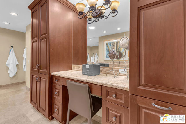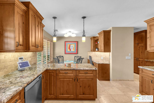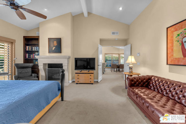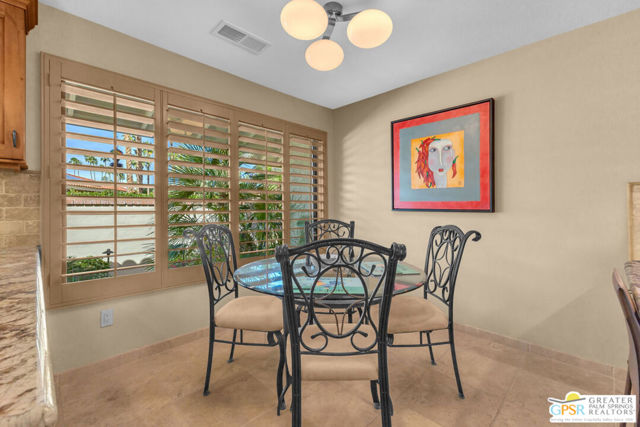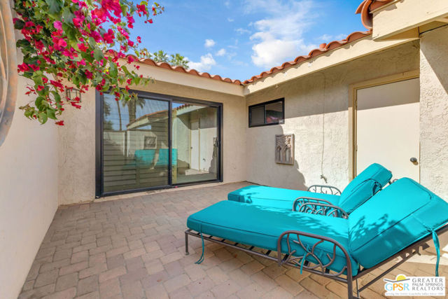 Facing the towering Santa Rosa Mountains within the gates of Indian Wells Country Club, this expansive home offers more than 2,700 square feet of beautifully maintained living space that lives like a single family residence. From the moment you arrive, the mountain backdrop makes an immediate impression. Inside, vaulted ceilings and generously scaled rooms create both volume and comfort. The living room is anchored by a substantial fireplace with architectural presence, complemented by custom built-ins that add balance and warmth. Walls of glass and plantation shutters frame the landscape and fill the home with natural light throughout the day. The floor plan is thoughtful and well proportioned, offering two spacious bedroom suites, each with its own en-suite bath, plus a powder room for guests. The primary suite serves as a true retreat, complete with a sitting area, fireplace, spa-inspired bath, and an impressive closet. A true formal dining room adds a level of scale and entertaining space not often found in condominium living. The kitchen features rich wood cabinetry, striking granite counters, and quality appliances, opening naturally to casual dining and living areas that invite gathering and connection. Private outdoor patios are framed by lush landscaping and dramatic mountain views that shift beautifully from morning light to evening glow. Recent improvements include updated HVAC systems, replacement of the flat portion of the roof, a new water heater, and a Tesla EV charging station in the garage, offering both comfort and peace of mind. Just minutes from the renowned Indian Wells Tennis Garden, fine dining, and premier golf, this residence offers the scale, privacy, and character of a single family home within one of Indian Wells' most established country club communities. Experience the views and scale of this exceptional home in person. Schedule your private showing today.