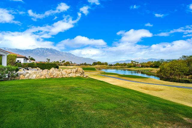 Fairway, Lake and Mountain Views highlight this Vintage Collection home in Legacy at Mission Hills Country Club. Incredible, expansive views of Mt. San Gorgonio, Mt. San Jacinto, a large lake and the 16th Fairway and 11th Green of the Pete Dye Challenge Course. Landscaped garden courtyard with room for casita. Large open floor plan with great entertaining spaces and 3 bedrooms each with an ensuite bath. The Great Room feature a step down granite clad wet bar and fireplace and Dining area with French doors to the courtyard. An open kitchen and family room features wall of glass highlighting the views, granite countertops and stainless appliances(Dacor, Kitchen Aid). The Primary Bathroom features a large walk-in closet, double vanity and tub and shower with granite and marble finishes. 2 guest bedrooms with newer carpet and ensuite baths provide great room for family and friends. Amazing mountain, lake and fairway views from the back terraces and room to add a custom pool and spa in the spacious backyard. Value Priced in Prestigious Legacy at Mission Hills, where HOA includes Social and Fitness membership to MHCC. Come home to your own resort lifestyle!