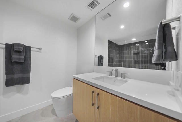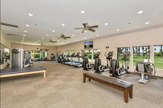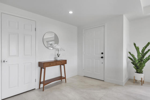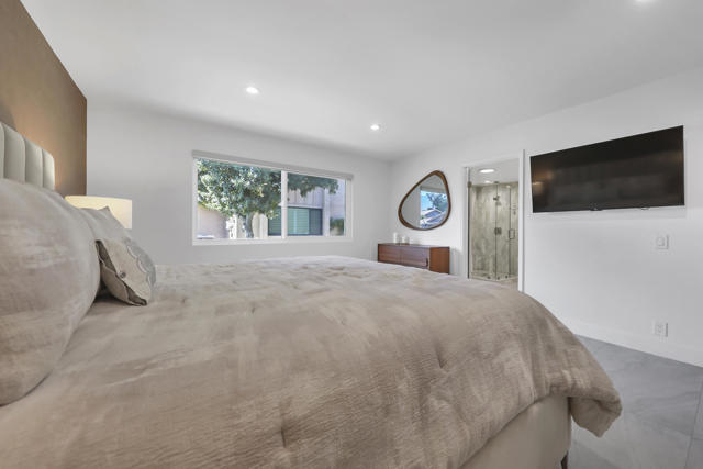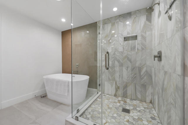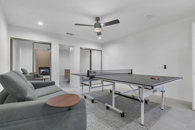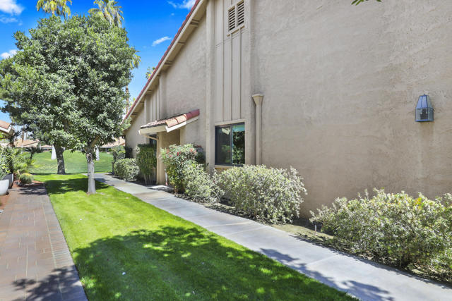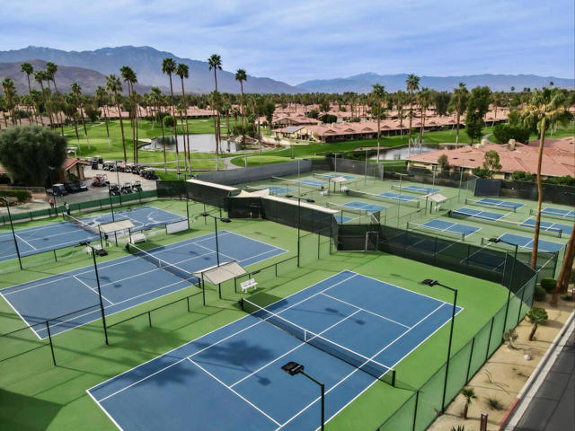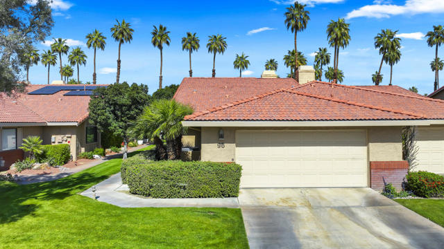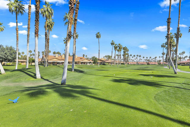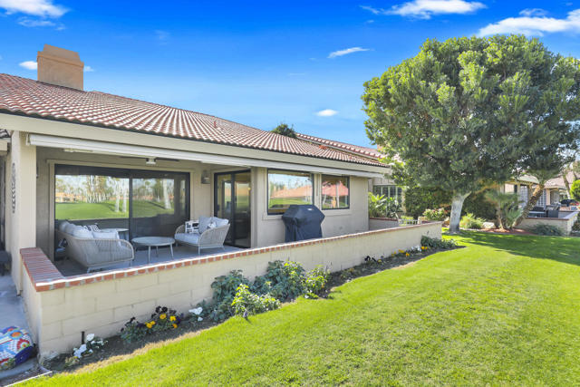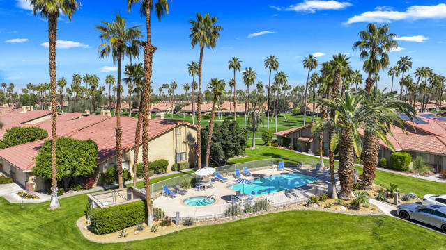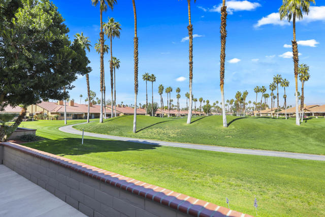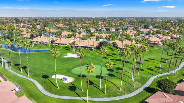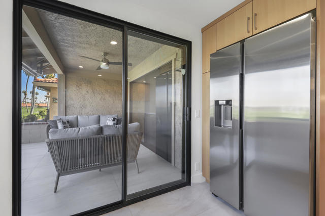 Completely REIMAGINED and REMODELED to modern Scandinavian-inspired elegance, this north-facing end-unit El Grande floor plan delivers the kind of calm, light-filled living that immediately makes you exhale. Clean lines, soft neutral tones, and abundant natural light create a serene, sophisticated ambiance from the moment you enter. Walls of windows frame uninterrupted views straight down the center of the lush fairway, across a sparkling lake with fountain, and toward the dramatic Chocolate Mountains beyond. The indoor-outdoor connection is exceptional. The expanded open-concept layout features vaulted ceilings, custom tile flooring throughout, and energy-efficient dual-pane windows. A dramatic floor-to-ceiling two-sided fireplace anchors both the living space and the expanded third bedroom/game room, enhancing warmth and architectural interest. The redesigned kitchen is both beautiful and functional, offering Quartz countertops, a generous breakfast bar with seating for four, stainless steel appliances, and a separate wet bar with wine refrigerator and floating shelves--ideal for entertaining. The primary suite is a private retreat with a walk-in closet and a spa-inspired bath featuring dual vanities, a freestanding soaking tub, and an oversized tiled shower. The guest bedroom enjoys direct access to a hall bath, while the expanded third bedroom functions beautifully as a den, game room, or additional suite, complete with vaulted ceilings, skylights, fireplace, and its own full bath with a large tiled shower. Additional highlights include a new roof, new west-facing Milgard dual-pane windows, new screens on the sliding glass doors, recessed lighting throughout, and direct access to an oversized garage with abundant built-in storage through the laundry room with added cabinetry. The tiled patio features an automatic retractable awning, modern ceiling fan, and convenient side-yard access gate. Located within Chaparral Country Club in the heart of Palm Desert, residents enjoy an 18-hole golf course, 21 pools and spas, tennis, pickleball, fitness center, activity center, and a beautifully remodeled clubhouse with dining and social events. HOA dues include basic cable and internet, trash, landscape maintenance, exterior maintenance, and roof coverage. This home offers an exceptional blend of architectural presence, calming design, and premier golf course positioning.